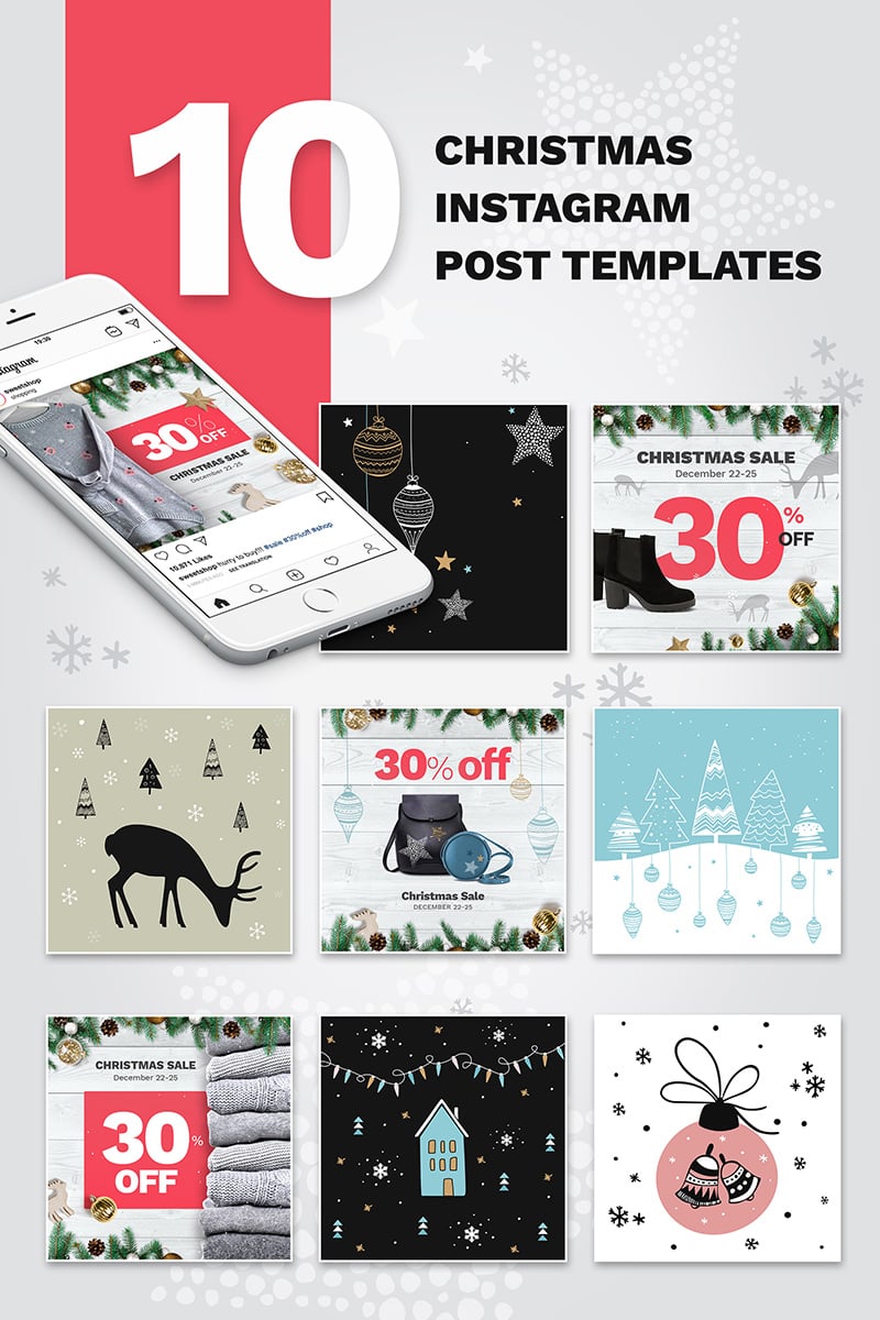 Download Шаблон для соцсетей "10 Christmas Instagram Post Templates for Social Media" / 10 Christmas Instagram Post Templates for Social Media - Шаблон для соцсетей на тему графика social media logo avatar fashion ecommerce instagram insta psd graphics christmas new_year