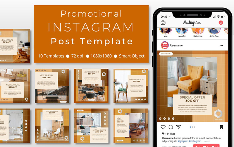 Download Шаблон для соцсетей "10 Unique Furniture Promotional - Instagram Post Template for Social Media" / 10 Unique Furniture Promotional - Instagram Post Template for Social Media - Шаблон для соцсетей на тему графика social,media,template,socialmedia,instagram,post,instagrampost,instagramtemplate,story,instagramstory,creative,design,marketing,sale,discount,furniture,interior,home,homeliving