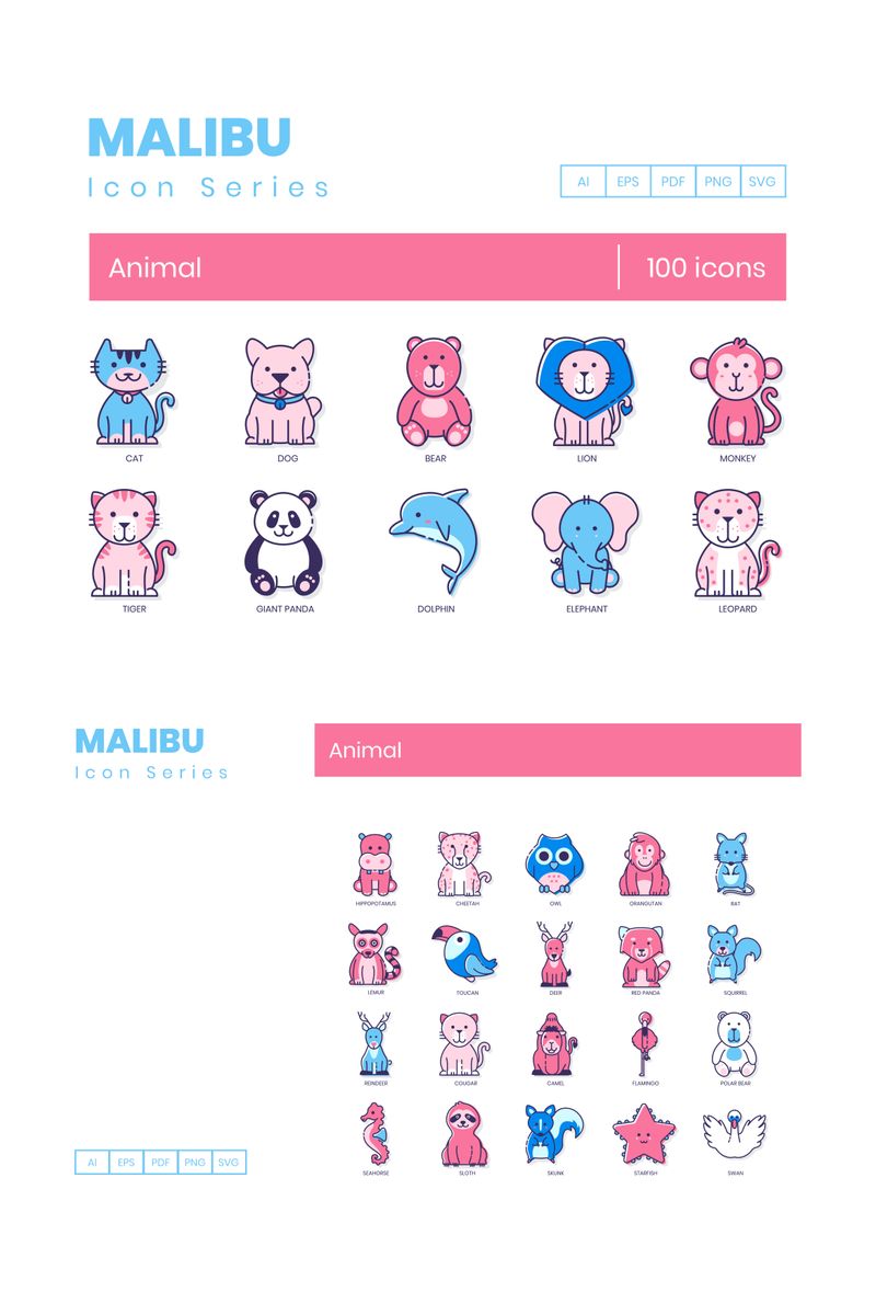 Download Набор иконок "100 Animal Icons - Malibu Series Set" / 100 Animal Icons - Malibu Series Set - Набор иконок на тему графика