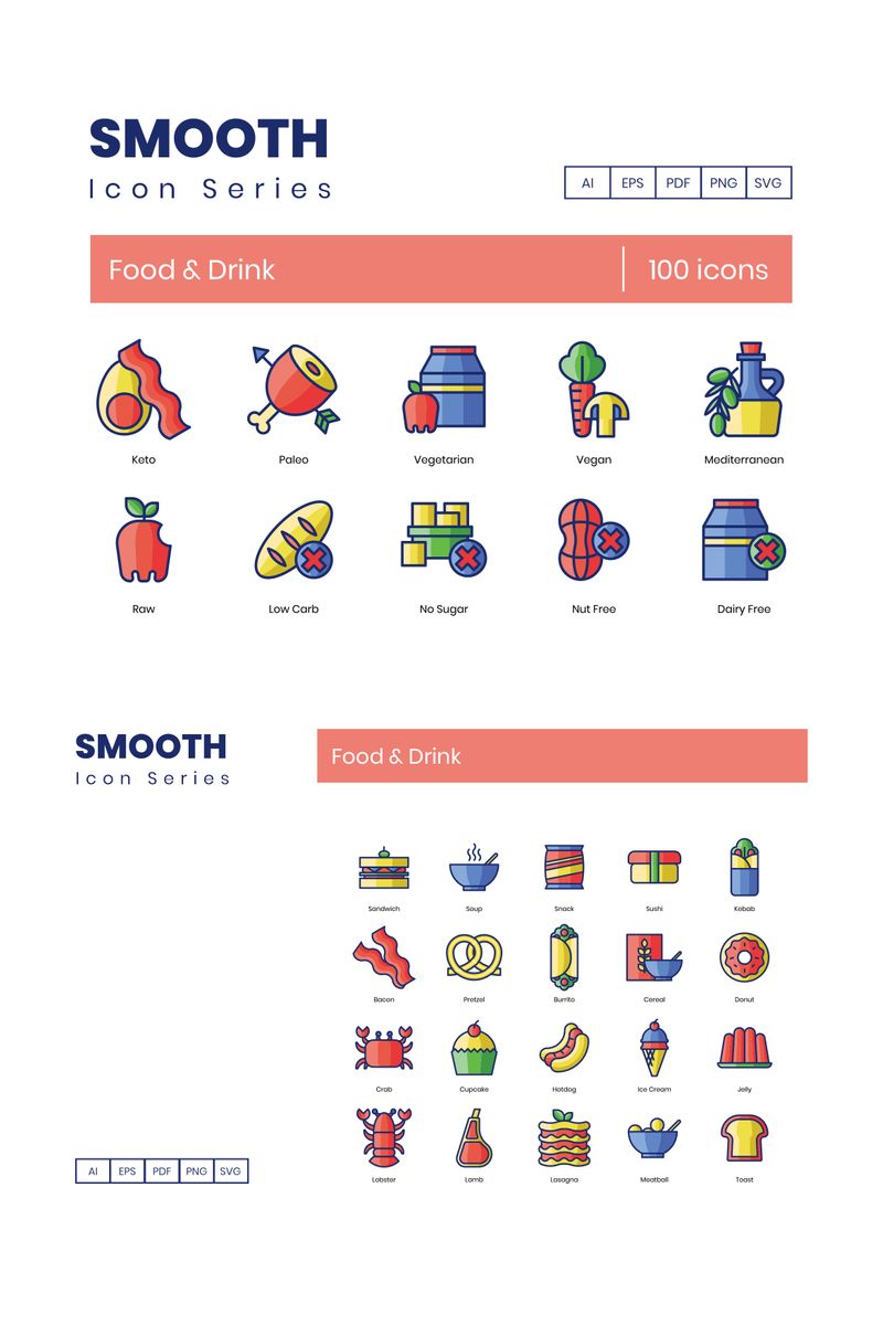 Download Набор иконок "100 Food _ Drinks Icons - Smooth Series Set" / 100 Food _ Drinks Icons - Smooth Series Set - Набор иконок на тему графика