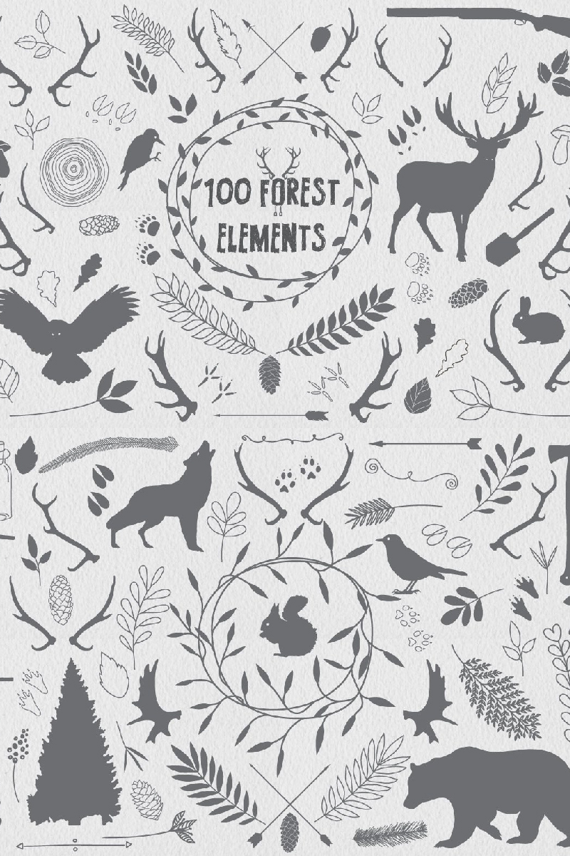 Download Иллюстрация "100 Forest Elements - Illustration" / 100 Forest Elements - Illustration - Иллюстрация на тему графика background wallpaper fabric flower floral florals wedding leaf leaves logo logos invitation card rsvp forest deer animals bear rabbit wood