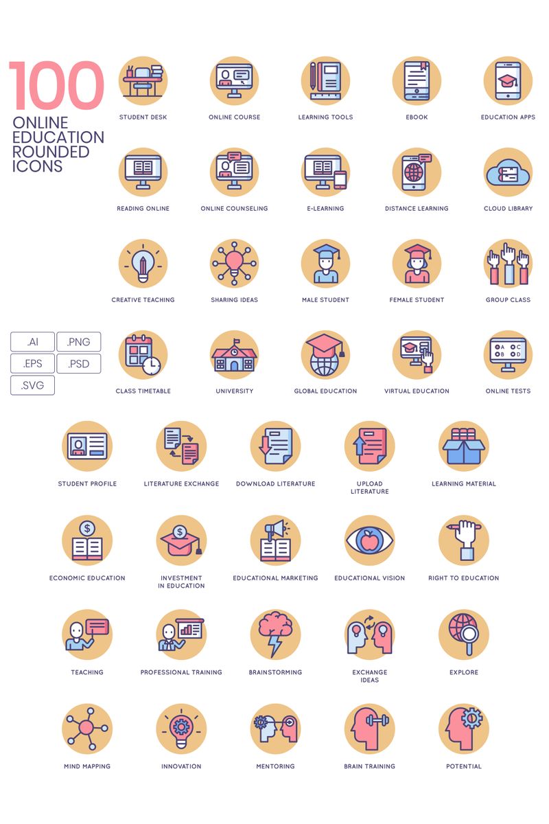Download Набор иконок "100 Online Education Icons - Butterscotch Series Set" / 100 Online Education Icons - Butterscotch Series Set - Набор иконок на тему графика