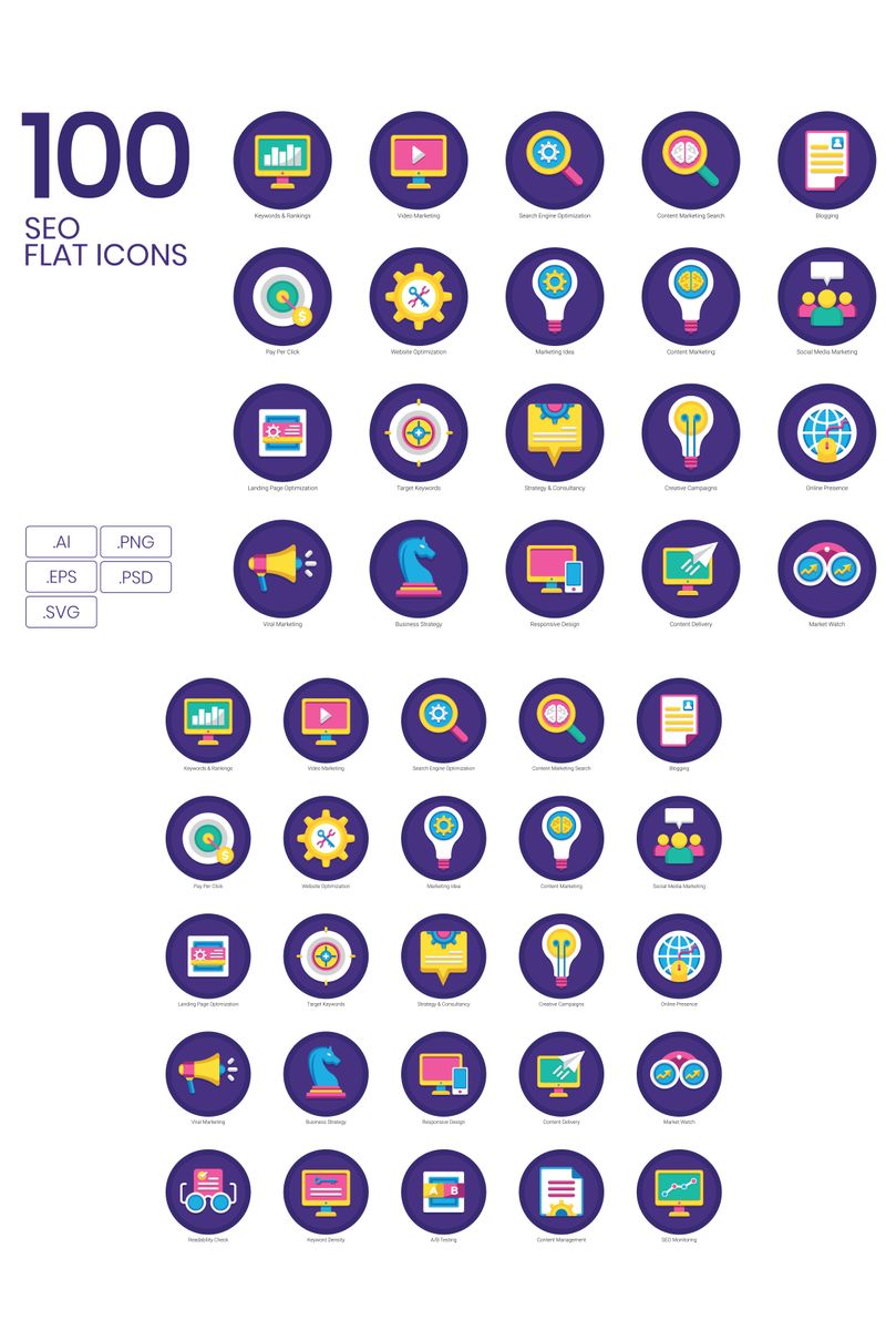 Download Набор иконок "100 SEO Icons - Orchid Series Set" / 100 SEO Icons - Orchid Series Set - Набор иконок на тему графика