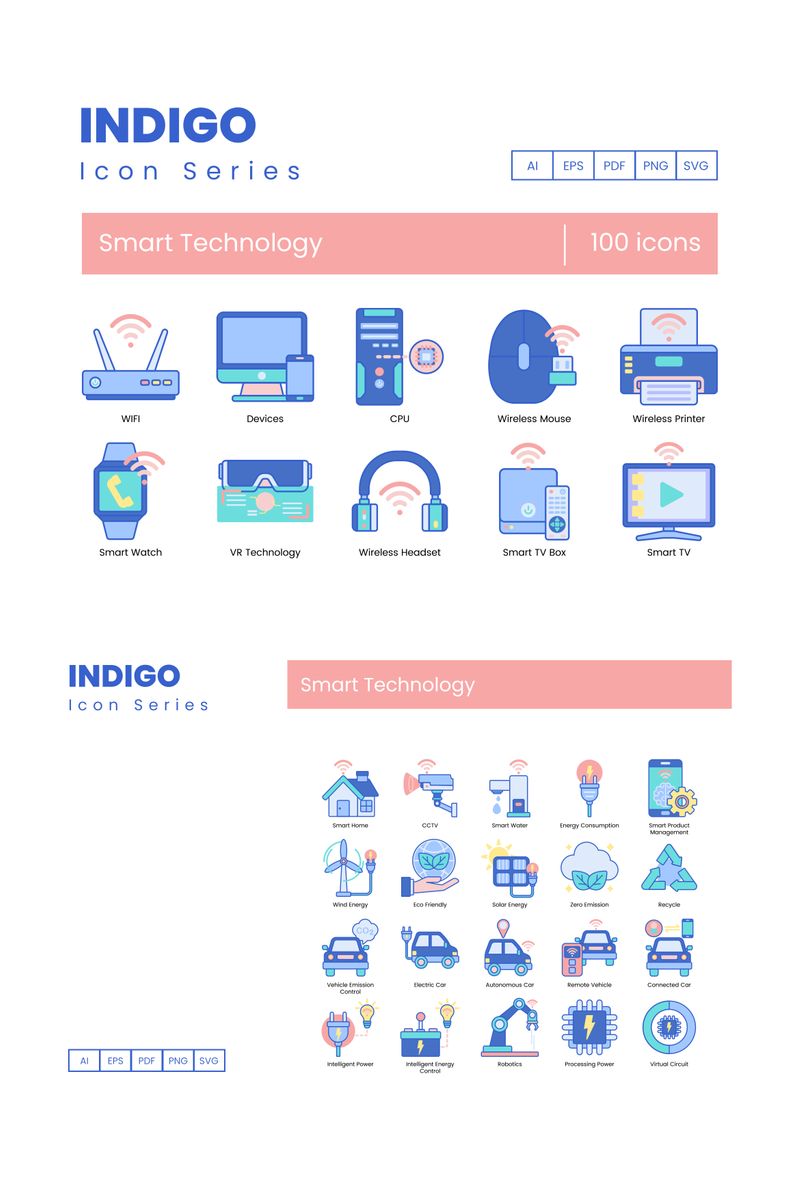 Download Набор иконок "100 Smart Technology Icons - Indigo Series Set" / 100 Smart Technology Icons - Indigo Series Set - Набор иконок на тему графика