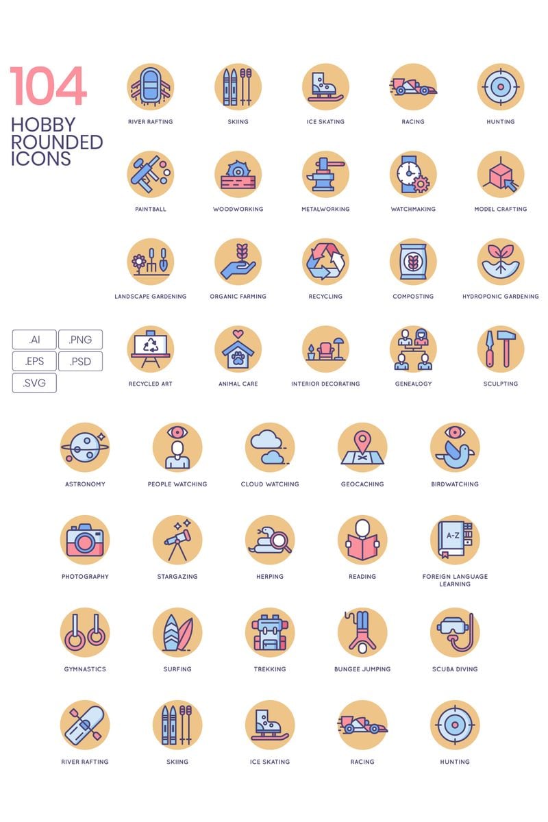 Download Набор иконок "104 Hobby Icons - Butterscotch Series Set" / 104 Hobby Icons - Butterscotch Series Set - Набор иконок на тему графика