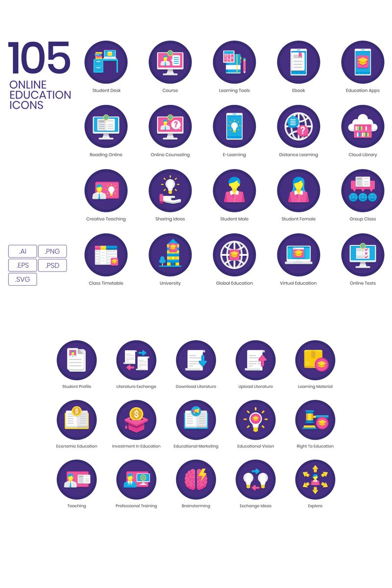 Download Набор иконок "105 Online Education Icons - Orchid Series Set" / 105 Online Education Icons - Orchid Series Set - Набор иконок на тему графика
