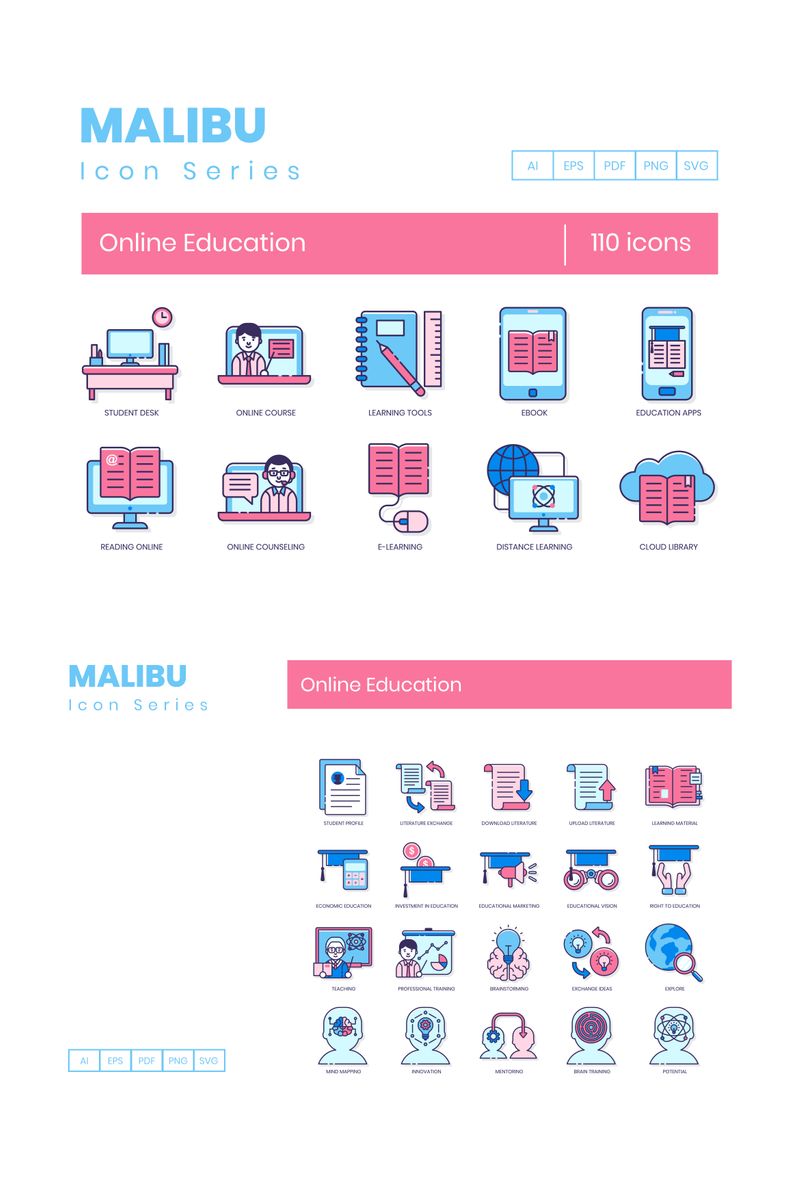 Download Набор иконок "110 Online Education Icons - Malibu Series Set" / 110 Online Education Icons - Malibu Series Set - Набор иконок на тему графика