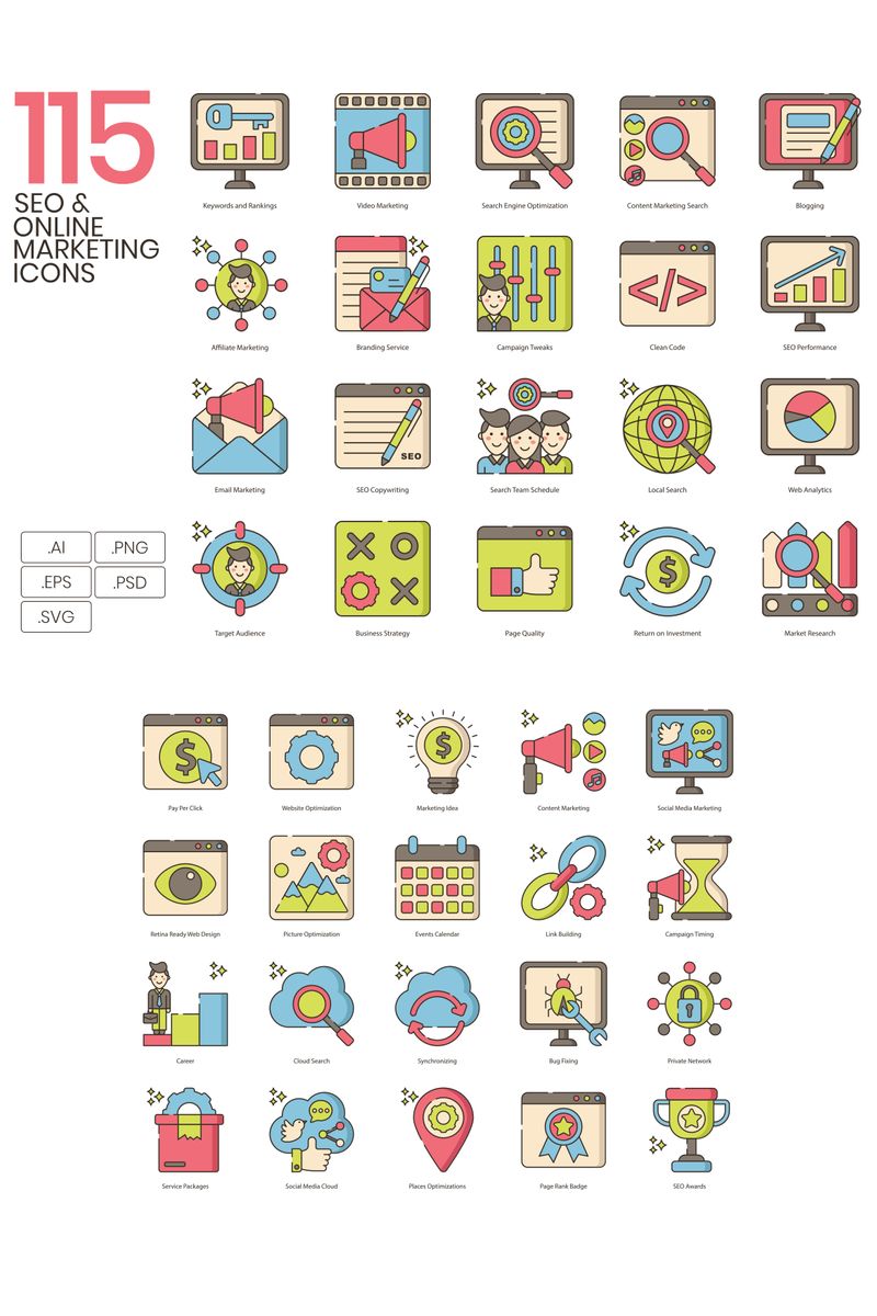 Download Набор иконок "115 Online Marketing Icons - Hazel Series Set" / 115 Online Marketing Icons - Hazel Series Set - Набор иконок на тему графика