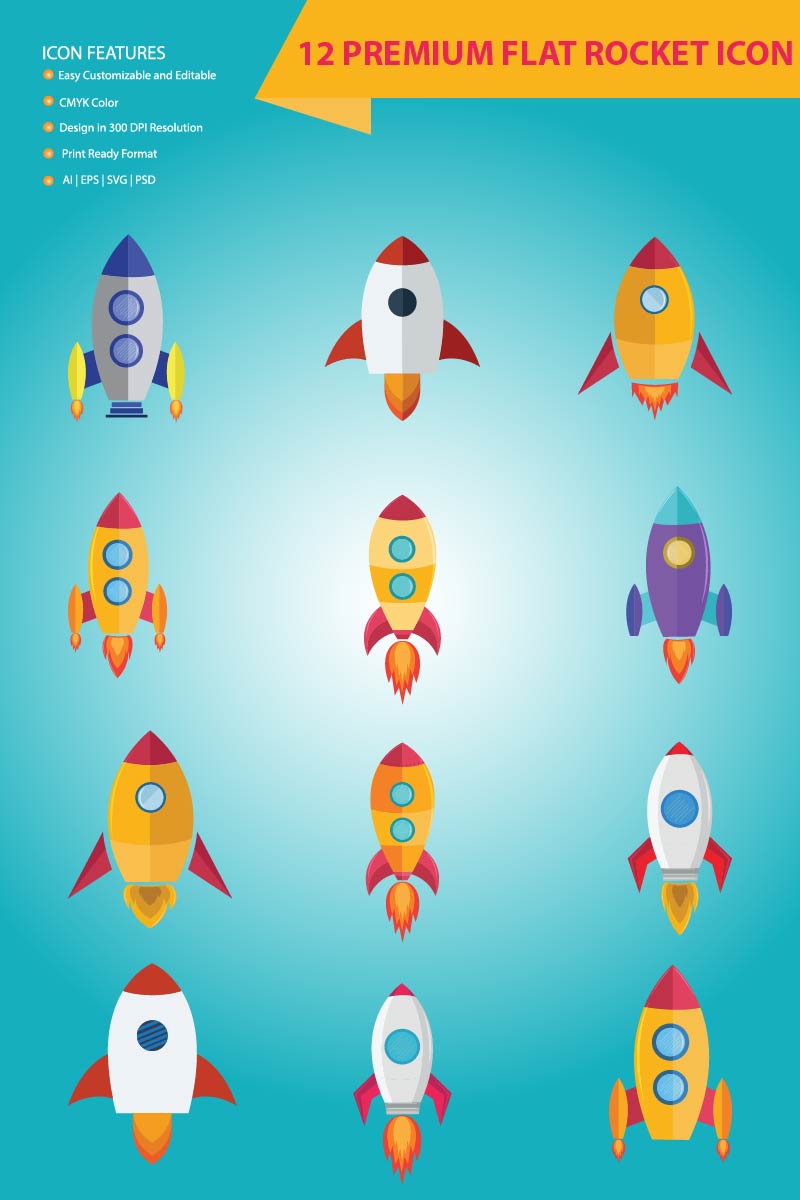 Download Набор иконок "12 Premium Flat Rocket Icon Set" / 12 Premium Flat Rocket Icon Set - Набор иконок на тему графика icon set launch start vector design flat concept rocket symbol illustration graphic web element technology logo startup spaceship science