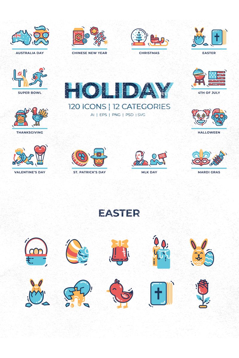 Download Набор иконок "120 Holiday Icons Set" / 120 Holiday Icons Set - Набор иконок на тему графика