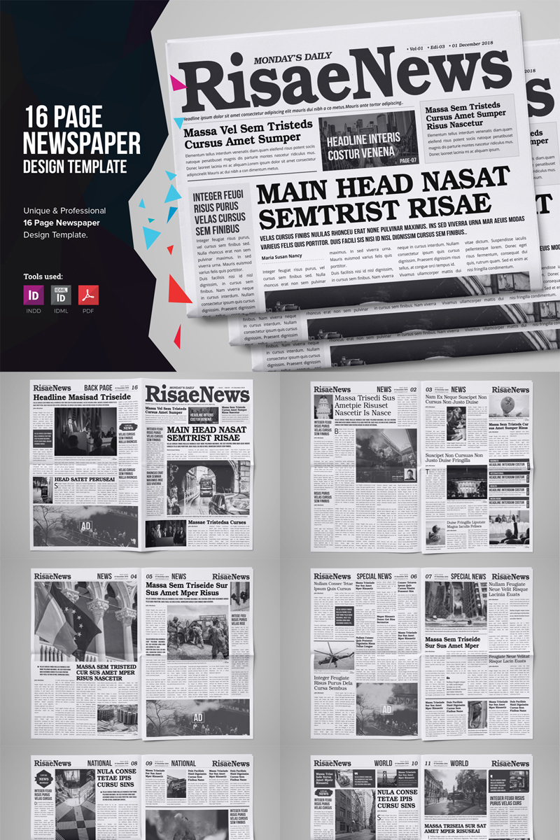Download Фирменный стиль "16 Page Newspaper Design - Corporate Identity Template" / 16 Page Newspaper Design - Corporate Identity Template - Фирменный стиль на тему графика 16page newspaper business newsletter corporate daily weekly education design indesign jurnalist monthly bundle template journalism tabloid mockup journal newsmedia newsagency