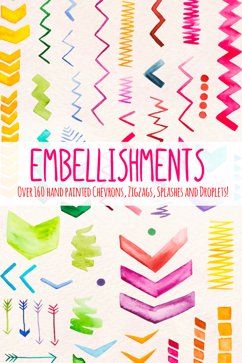 Download Иллюстрация "168 Watercolor Chevrons, Darts, Phrases - Illustration" / 168 Watercolor Chevrons, Darts, Phrases - Illustration - Иллюстрация на тему графика watercolour watercolor painting blog graphics clip art commercial use chevrons clipart wingdings embellishment decorative painted decoration