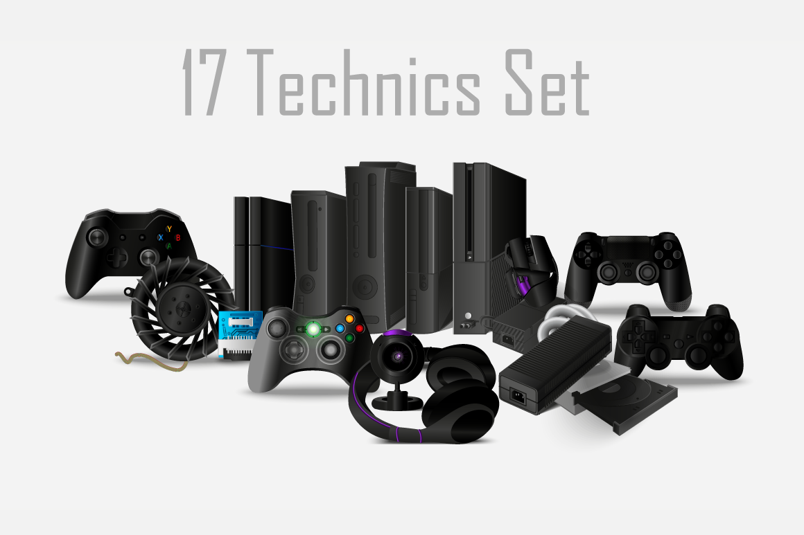 Download Фирменный стиль "17 Technics Set - Corporate Identity Template" / 17 Technics Set - Corporate Identity Template - Фирменный стиль на тему графика modern,illustration,design,sign,kids,vector,popular,realistic,real,cool,fresh,dashboard,app,green,technology,video,power,tech,background,black,red,digital,computer,button,game,toy,icon,action