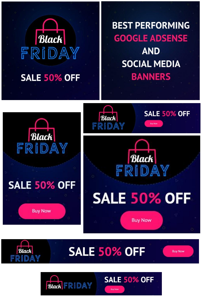 Download 18 Баннеров к Черной пятнице для Google Ads и соцсетей / 18 Black Friday: Google AdSense and Banners Social Media Template - Шаблон для соцсетей на тему графика black friday