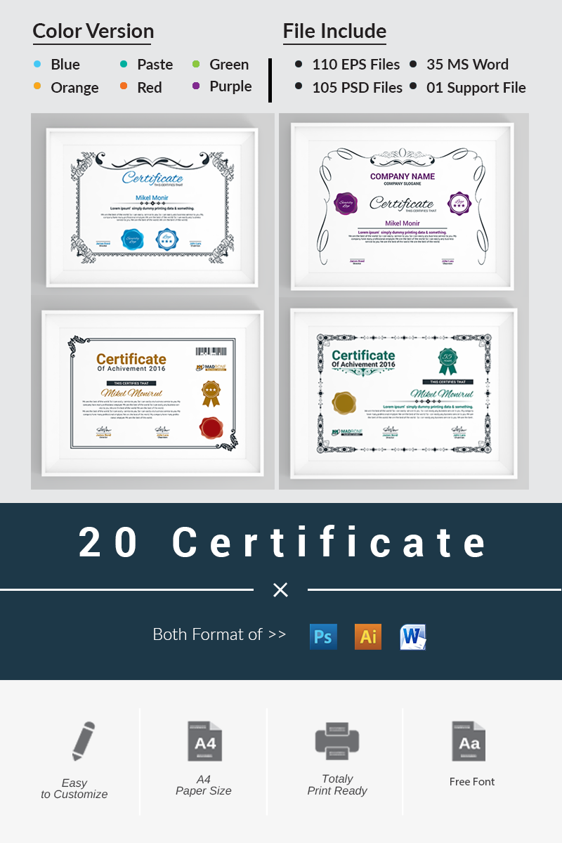 Download Бандл 20 Сертификатов / 20 Certificate Certificate Template - Шаблон сертификата на тему графика achievement award background border certificate coupon diploma engraved engraving frame guilloche multipurpose pantone professional protected rosette secure security paper two