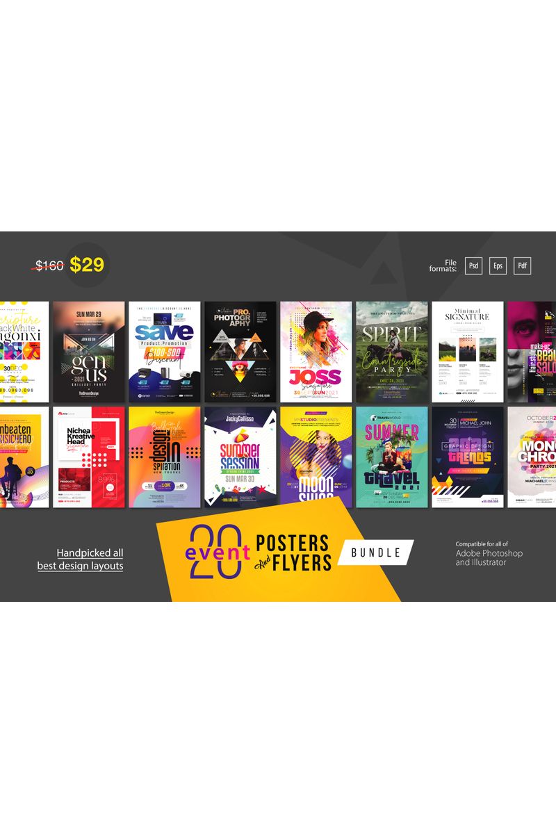 Download Фирменный стиль "20 Event Poster & Flyer Bundle - Corporate Identity Template" / 20 Event Poster & Flyer Bundle - Corporate Identity Template - Фирменный стиль на тему графика event poster,party flyer,birthday flyer,wedding poster,wedding flyer,creative agency,design flyer