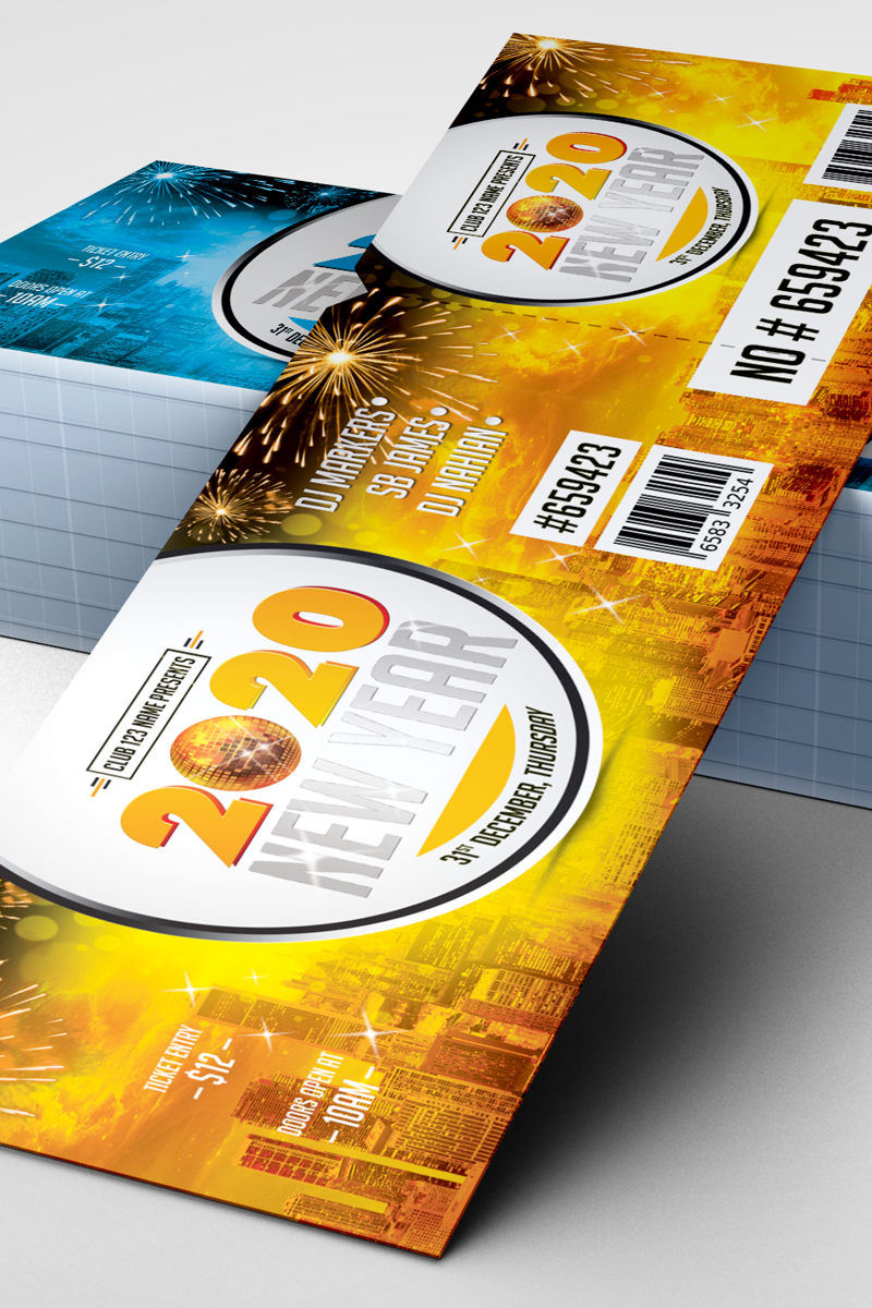 Download Фирменный стиль "2020 New Year Party Event Ticket Design - Corporate Identity Template" / 2020 New Year Party Event Ticket Design - Corporate Identity Template - Фирменный стиль на тему графика 2019 new yearundefined year event ticket vip pass party eve happy entry design template print