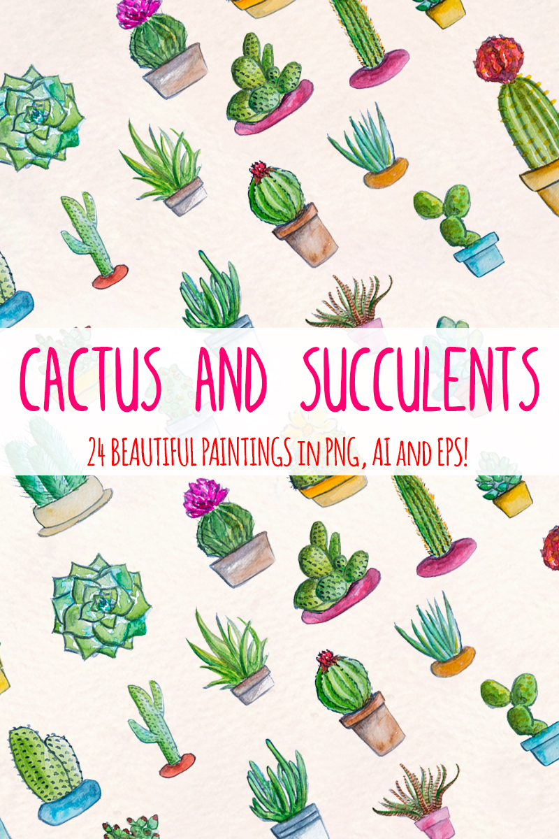 Download Иллюстрация "24 Cactus and Succulent - Illustration" / 24 Cactus and Succulent - Illustration - Иллюстрация на тему графика watercolour watercolor painting blog graphics bunting country style fairground english garden clip art commercial use county fair party time