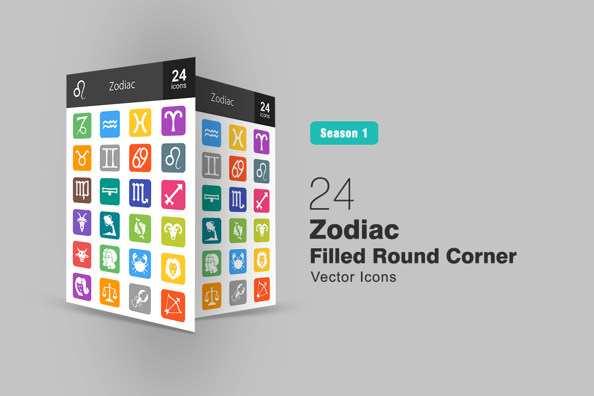 Download Набор иконок "24 Zodiac Filled Round Corner Icon Set" / 24 Zodiac Filled Round Corner Icon Set - Набор иконок на тему графика zodiac,icon,stars,signs,birth,month,horoscope,capricorn,aquarius,pisces,aries,taurus,gemini,cancer,leo,virgo,libra,scorpio,sagittarius,iconbunny