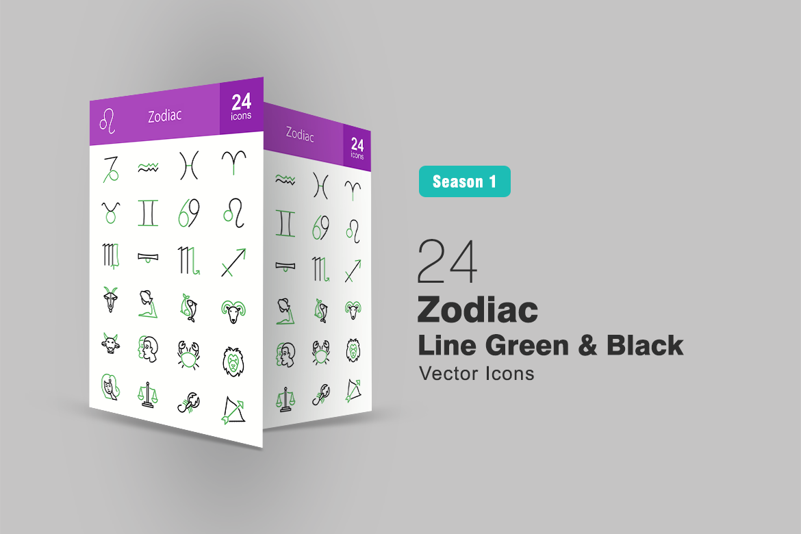 Download Набор иконок "24 Zodiac Line Green & Black Icon Set" / 24 Zodiac Line Green & Black Icon Set - Набор иконок на тему графика zodiac,icon,stars,signs,birth,month,horoscope,capricorn,aquarius,pisces,aries,taurus,gemini,cancer,leo,virgo,libra,scorpio,sagittarius,iconbunny