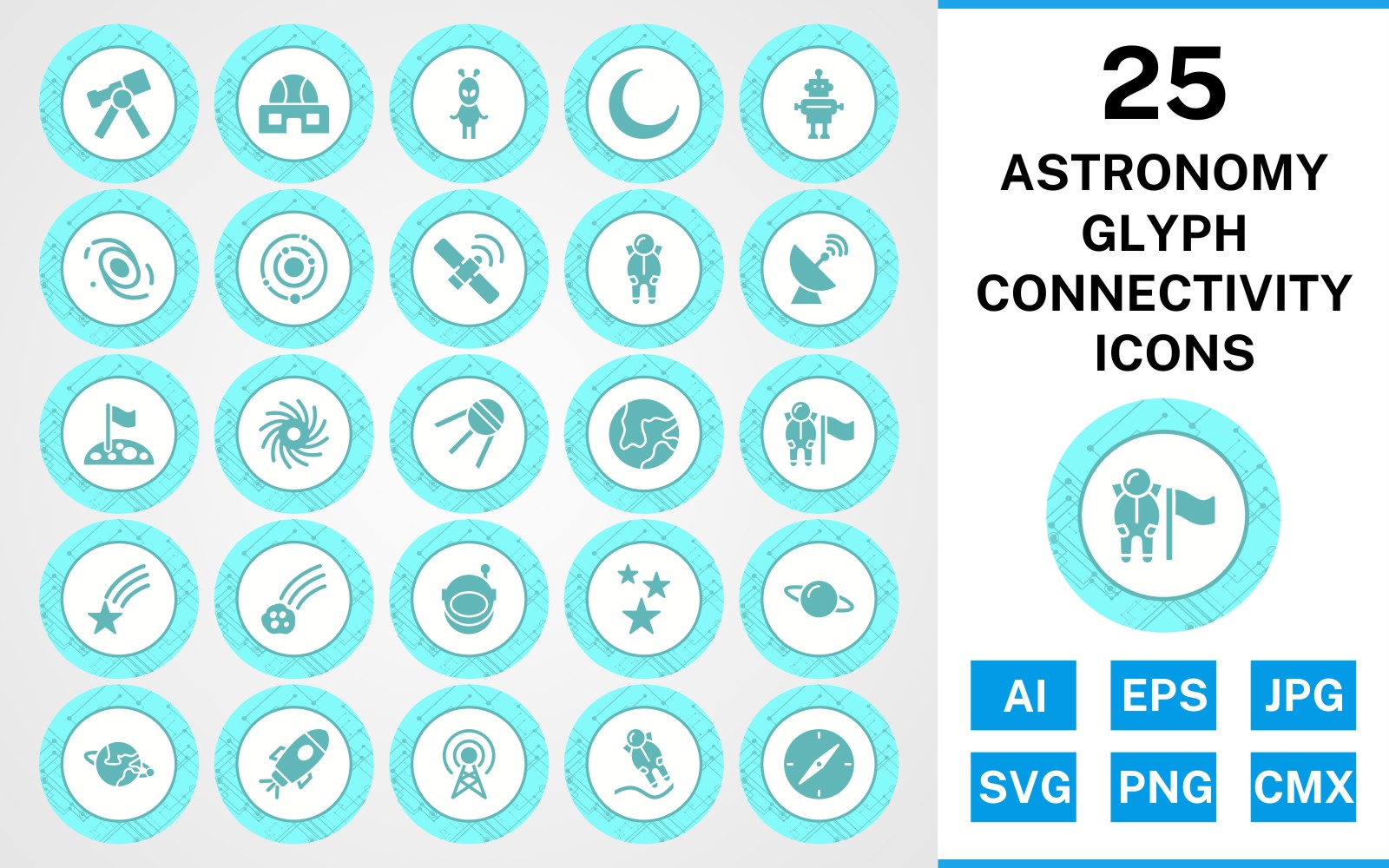 Download Набор иконок "25 Astronomy Glyph Connectivity Icon Set" / 25 Astronomy Glyph Connectivity Icon Set - Набор иконок на тему science set,file,icon,icons,glyph,vector,sign,symbol,pictogram,connectivity,astronomy,astronout,galaxy,telescope,stars,compass,falling star,space station,solar system