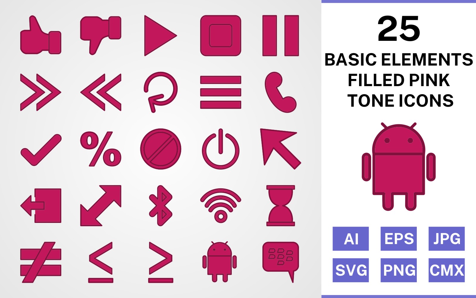 Download Набор иконок "25 Basic Elements Filled Pink Tone Icon Set" / 25 Basic Elements Filled Pink Tone Icon Set - Набор иконок на тему data set,file,icon,icons,filled,vector,sign,symbol,pictogram,pink,tone,basic elements,play,stop,tick,like,cursor,android,blackberry,menu