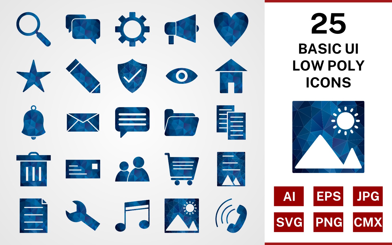 Download Набор иконок "25 Basic ui Low poly Icon Set" / 25 Basic ui Low poly Icon Set - Набор иконок на тему data set,file,icon,icons,line,circle,vector,sign,symbol,pictogram,lowpoly,basic ui,find,cart,users,chat,picture,document,trash,inbox