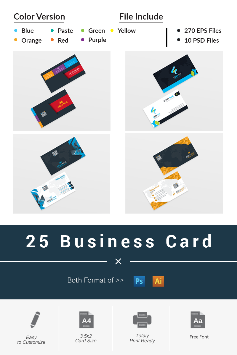 Download Бандл 25 визиток / 25 Business Card - Corporate Identity Template - Фирменный стиль на тему графика black blue business card design clean style corporate creative cyan elegant green line minimalist modern template orange personal photoshop print