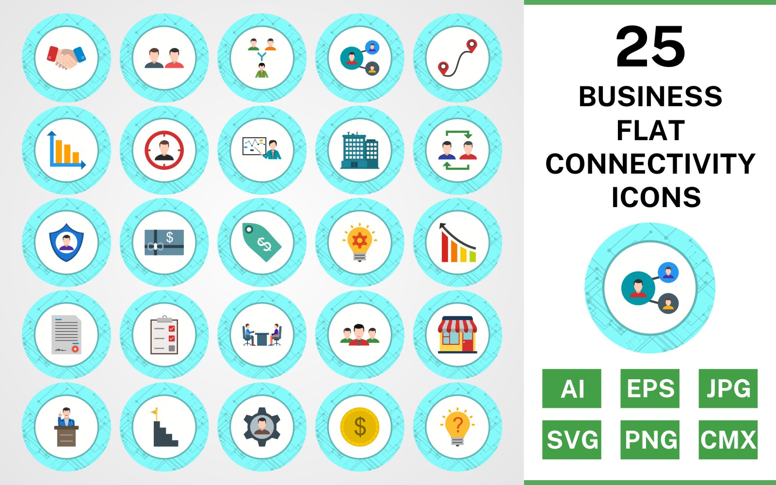 Download Набор иконок "25 Business Flat Connectivity Icon Set" / 25 Business Flat Connectivity Icon Set - Набор иконок на тему business set,file,icon,icons,flat,vector,sign,symbol,pictogram,connectivity,business,office,shop,speech,decison making,route,handshake,management,working team
