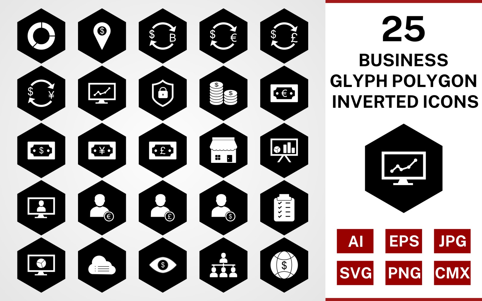 Download Набор иконок "25 Business Glyph Polygon Inverted Icon Set" / 25 Business Glyph Polygon Inverted Icon Set - Набор иконок на тему финансы set,file,icon,icons,glyph,vector,sign,symbol,pictogram,polygon,inverted,business,pie chart,organization,world money,pound,coins,stock market,cloud data,planning