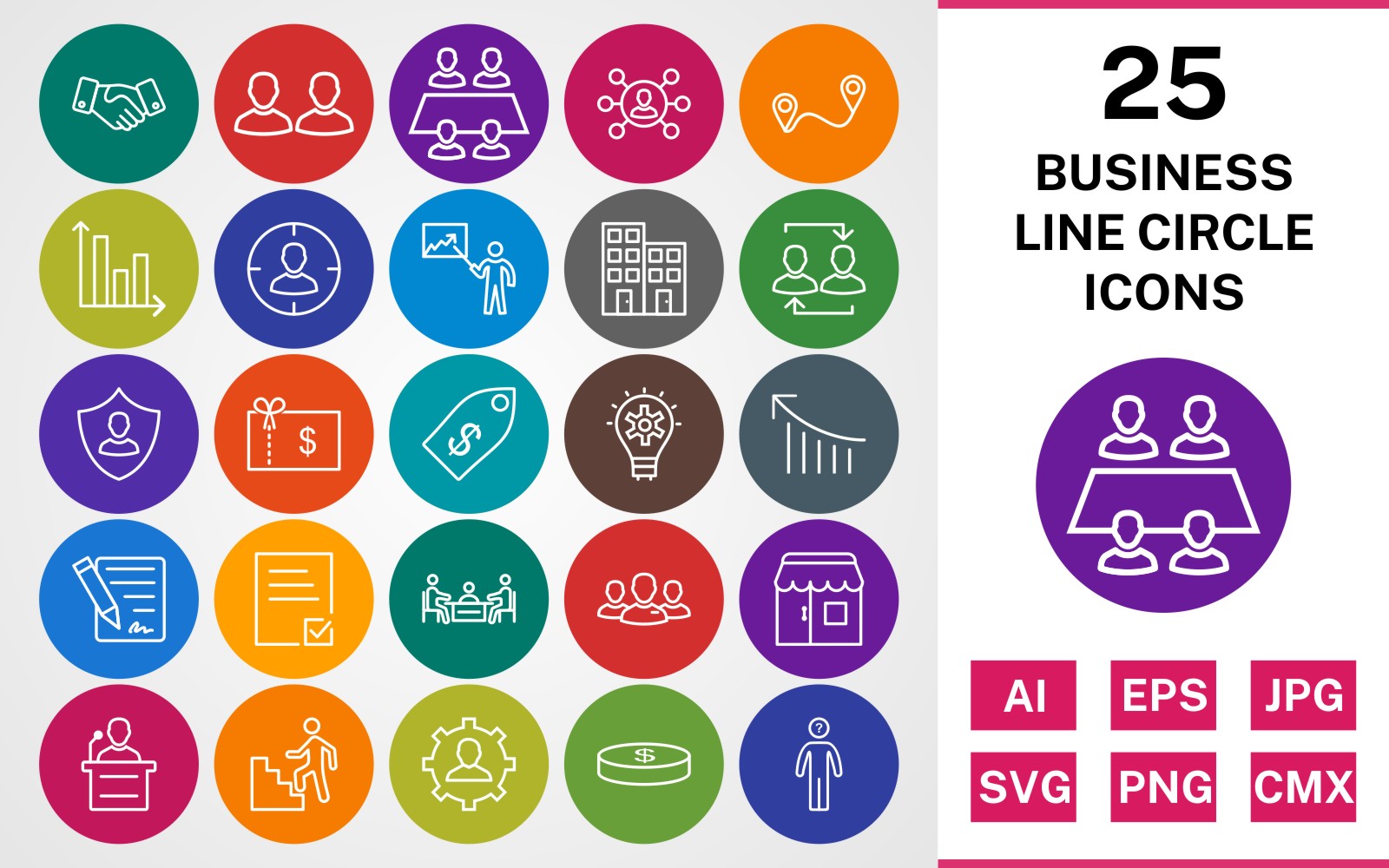 Download Набор иконок "25 BUSINESS LINE CIRCLE PACK Icon Set" / 25 BUSINESS LINE CIRCLE PACK Icon Set - Набор иконок на тему business set,file,icon,icons,linear,line,vector,sign,symbol,pictogram,circle,business,stratgy,contract,task,promotion,decision making,sharing,performance,management