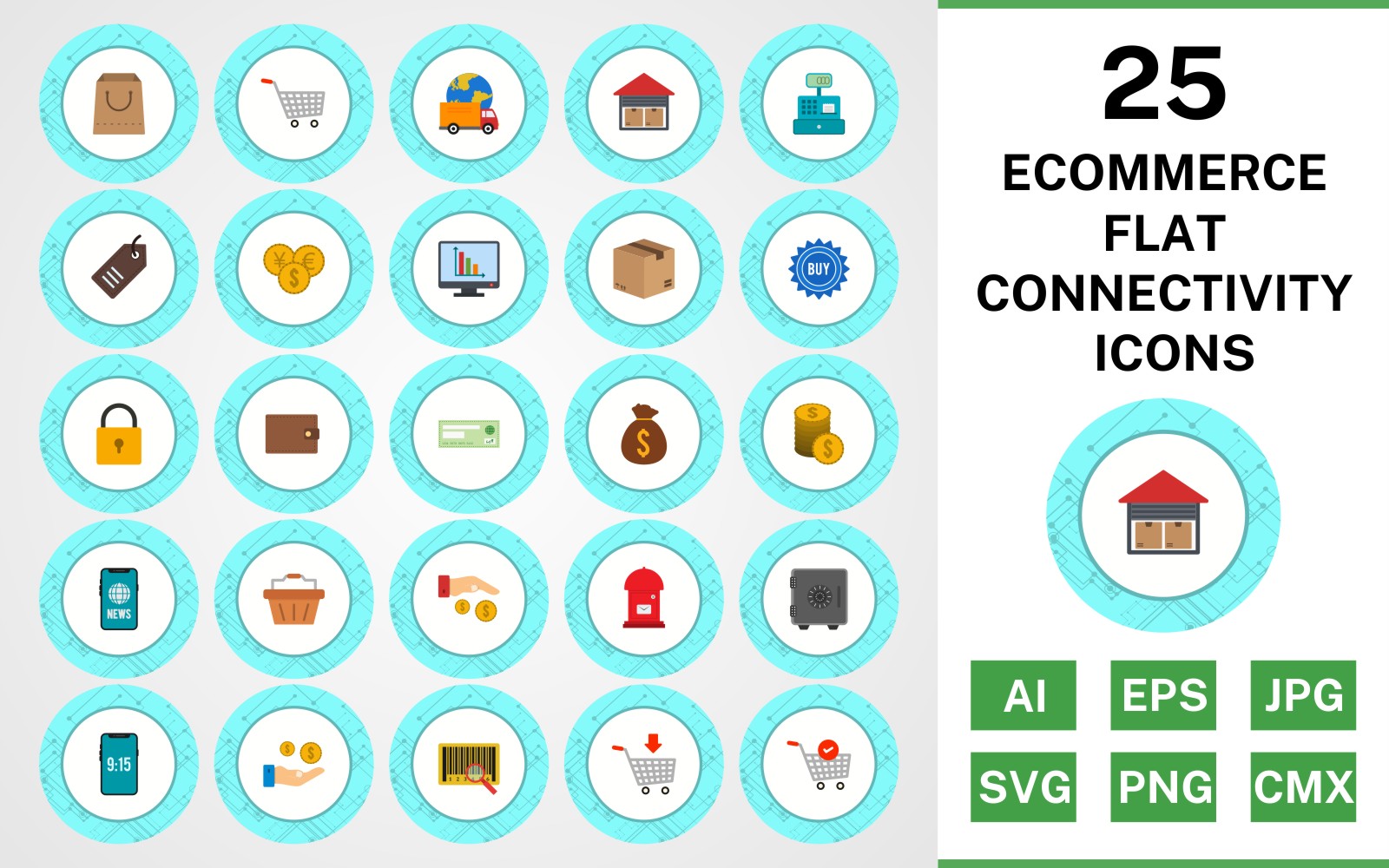Download Набор иконок "25 Ecommerce Flat Connectivity Icon Set" / 25 Ecommerce Flat Connectivity Icon Set - Набор иконок на тему shopping set,file,icon,icons,flat,vector,sign,symbol,pictogram,connectivity,ecommerce,buy,security,tag,vault,add to cart,payment,basket,cheque
