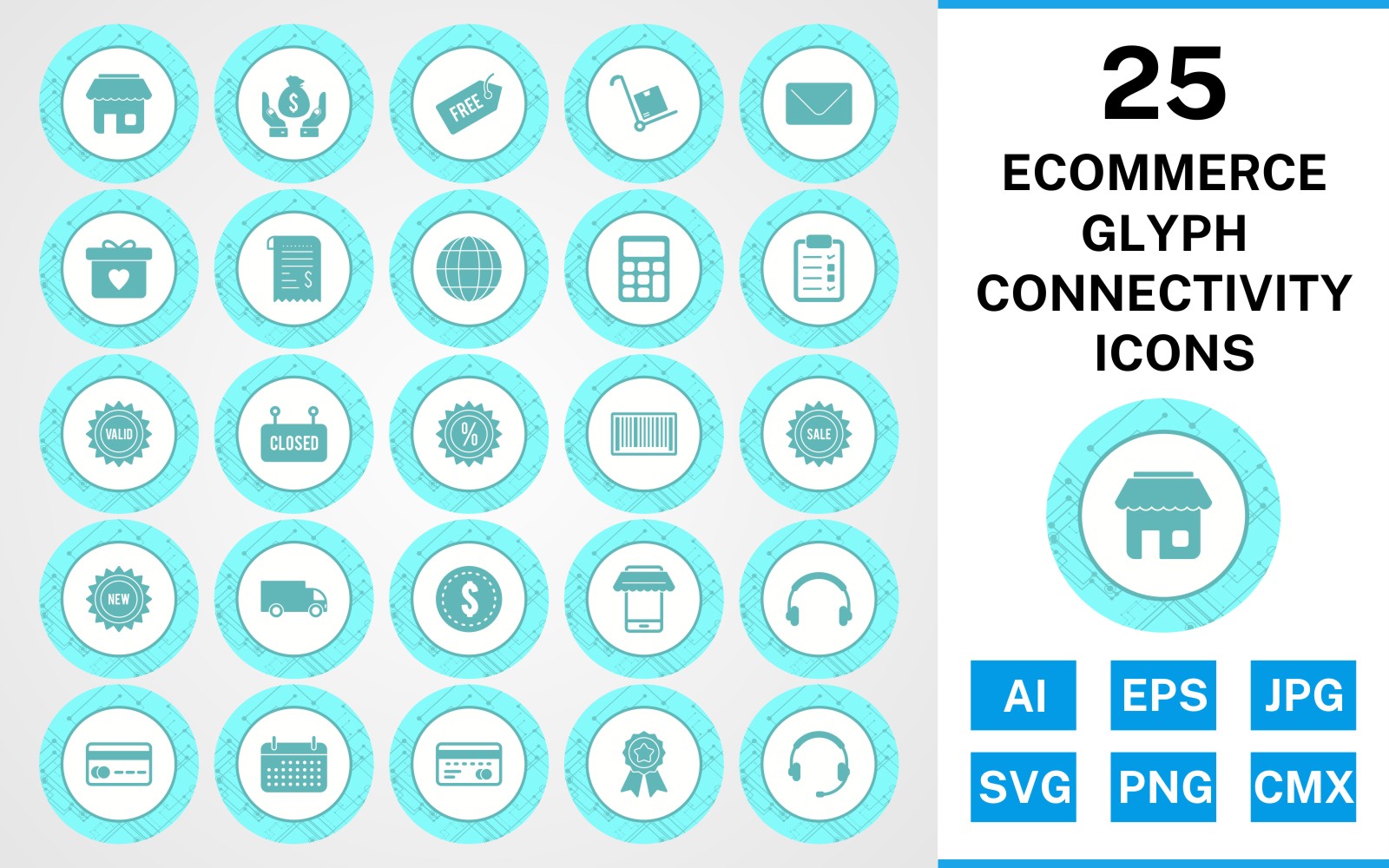 Download Набор иконок "25 Ecommerce Glyph Connectivity Icon Set" / 25 Ecommerce Glyph Connectivity Icon Set - Набор иконок на тему shopping set,file,icon,icons,glyph,vector,sign,symbol,pictogram,connectivity,ecommerce,envelope,saving,trolley,new,sale,atm,shop,discount