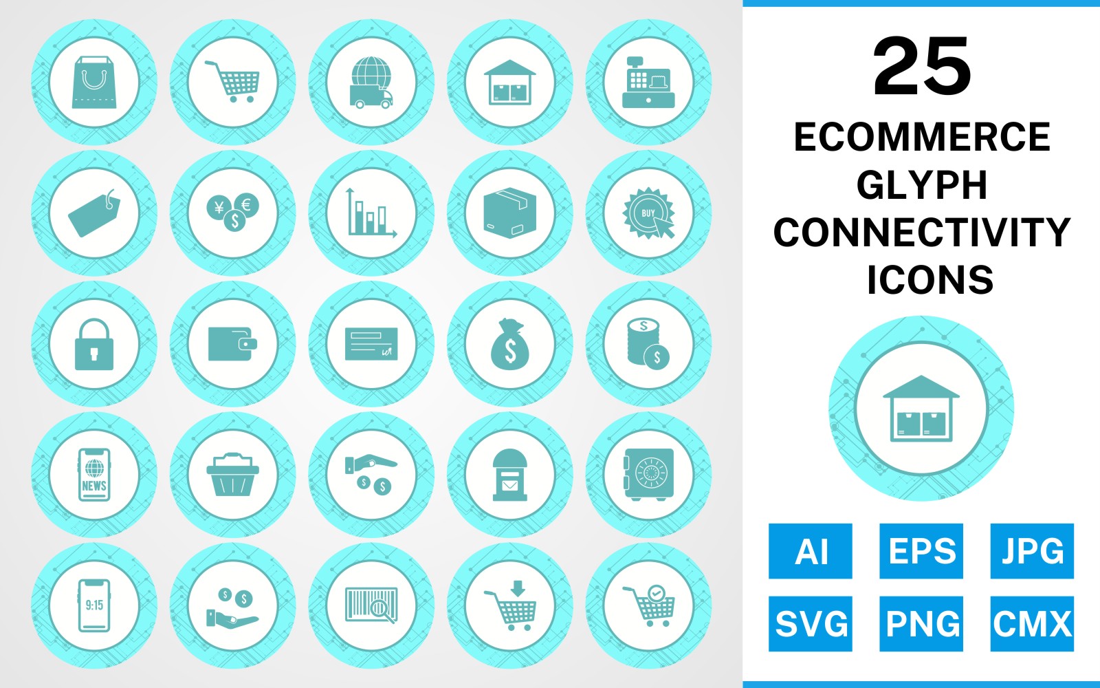 Download Набор иконок "25 Ecommerce Glyph Connectivity Icon Set" / 25 Ecommerce Glyph Connectivity Icon Set - Набор иконок на тему shopping set,file,icon,icons,glyph,vector,sign,symbol,pictogram,connectivity,ecommerce,buy,security,tag,vault,add to cart,payment,basket,cheque