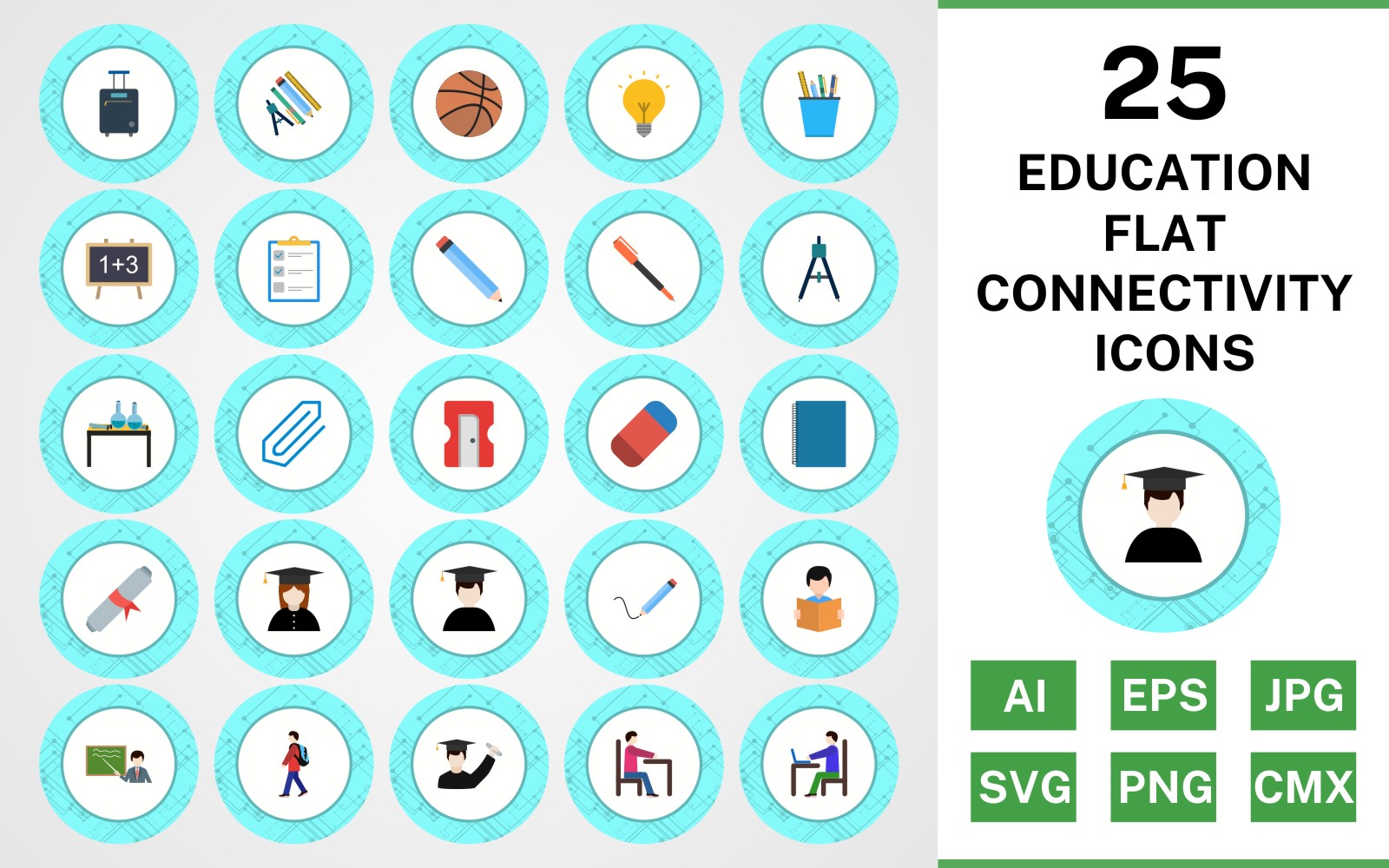 Download Набор иконок "25 Education Flat Connectivity Icon Set" / 25 Education Flat Connectivity Icon Set - Набор иконок на тему science set,file,icon,icons,flat,vector,sign,symbol,pictogram,connectivity,education,bag,writing,teaching,reading,pen,pin,degree,compass,mathematics