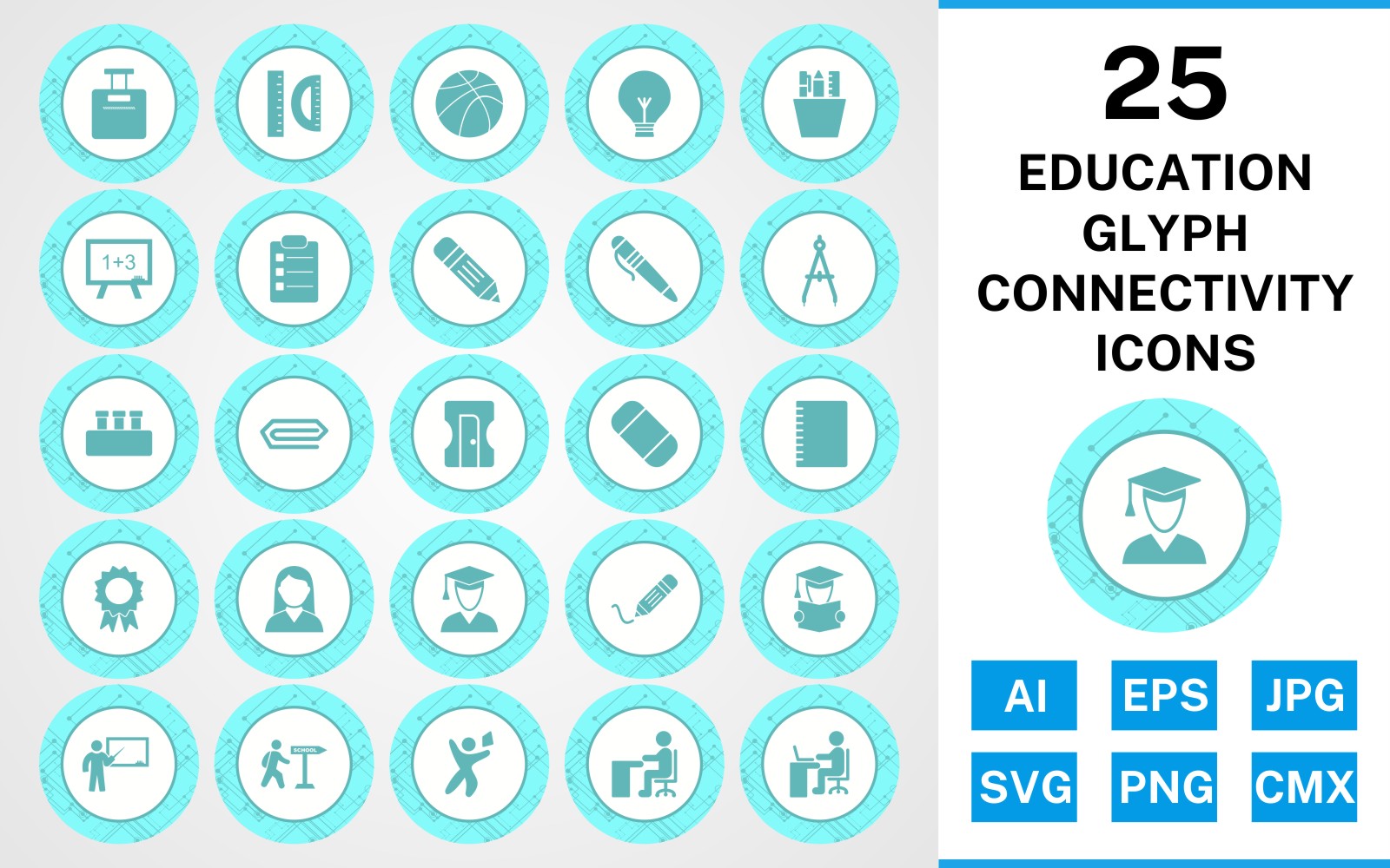 Download Набор иконок "25 Education Glyph Connectivity Icon Set" / 25 Education Glyph Connectivity Icon Set - Набор иконок на тему science set,file,icon,icons,glyph,vector,sign,symbol,pictogram,connectivity,education,bag,writing,teaching,reading,pen,pin,degree,compass,mathematics
