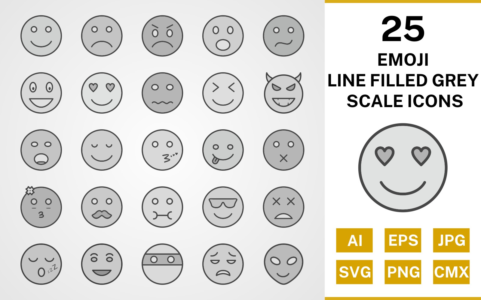 Download Набор иконок "25 Emoji Line Filled Greyscale Icon Set" / 25 Emoji Line Filled Greyscale Icon Set - Набор иконок на тему social media set,file,icon,icons,line,filled,vector,sign,symbol,pictogram,greyscale,emoji,happy,sad,lol,alien,kiss,wink,nervous,calm