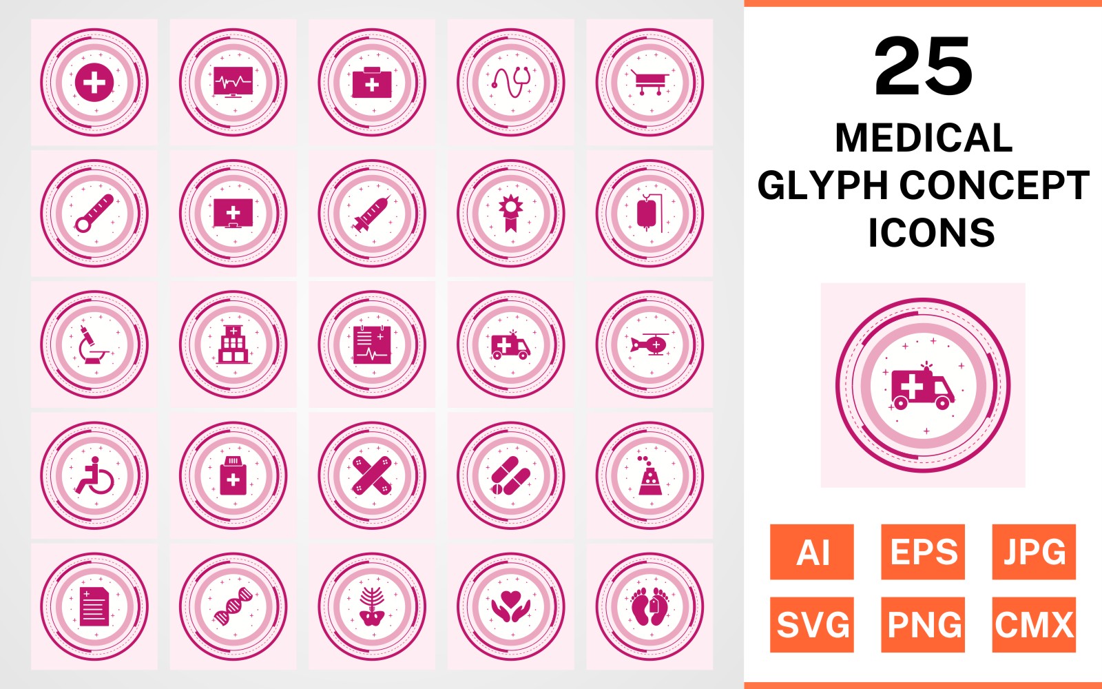 Download Набор иконок "25 Medical Glyph Concept Icon Set" / 25 Medical Glyph Concept Icon Set - Набор иконок на тему medical set,file,icon,icons,glyph,vector,sign,symbol,pictogram,design,concept,medical,drip,xray,dna,report,toe tag,medicines,hospital,injection