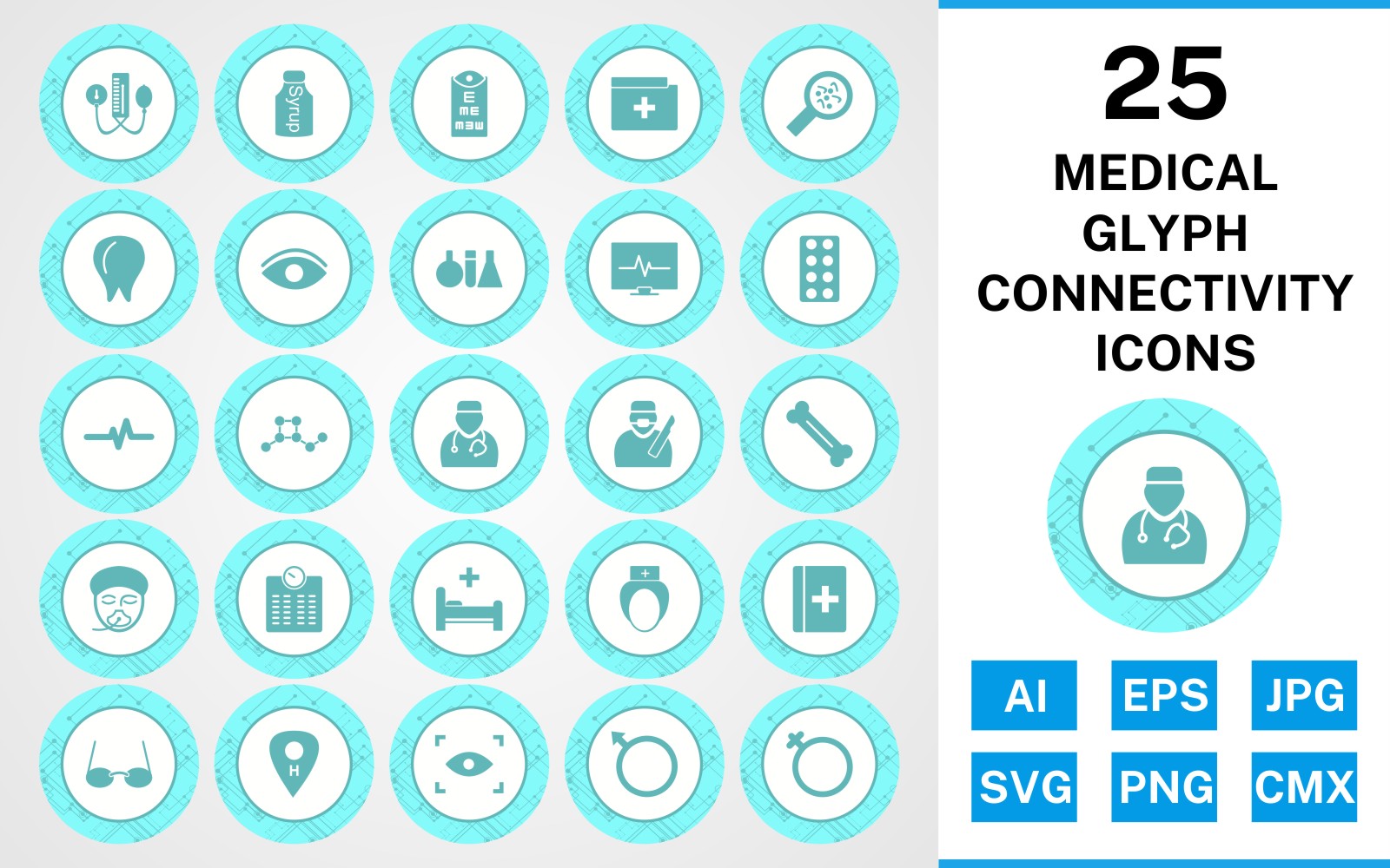 Download Набор иконок "25 Medical Glyph Connectivity Icon Set" / 25 Medical Glyph Connectivity Icon Set - Набор иконок на тему medical set,file,icon,icons,glyph,vector,sign,symbol,pictogram,connectivity,medical,doctor,nurse,bed,scan,eye test,bp apparatus,bone,tablets,test tubes