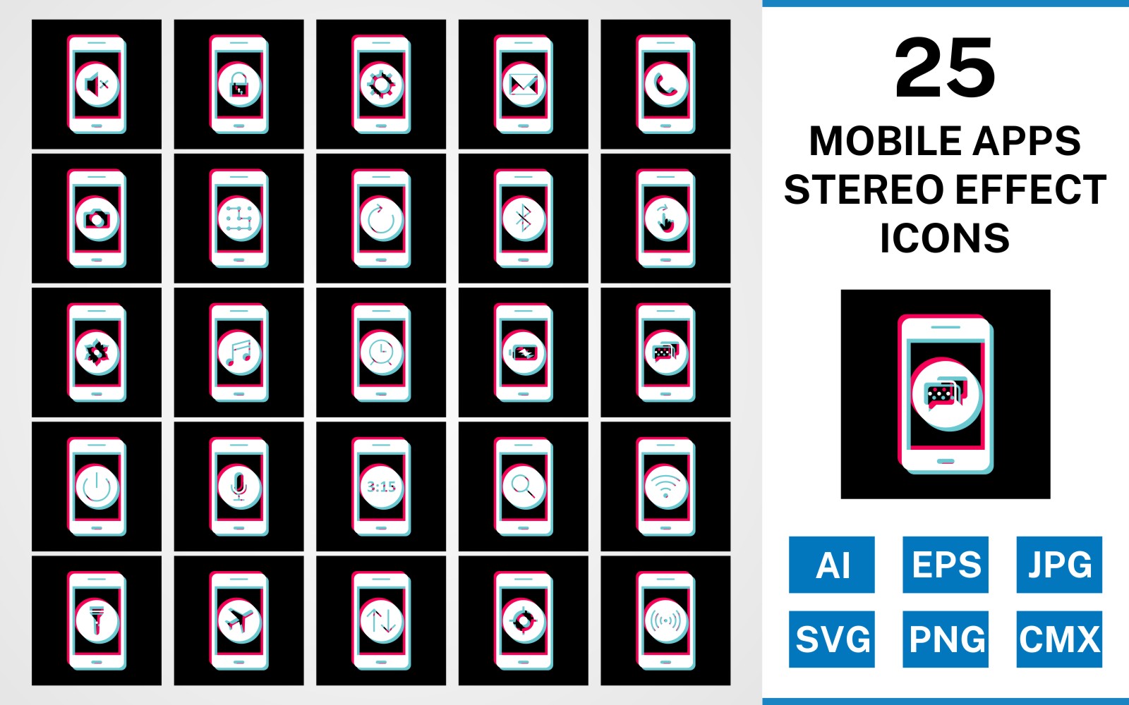 Download Набор иконок "25 Mobile Apps Stereo Effect Icon Set" / 25 Mobile Apps Stereo Effect Icon Set - Набор иконок на тему music set,file,stereo,icon,icons,glyph,vector,sign,symbol,pictogram,effect,mobile apps,power off,music,camera,call,lock,silent,alarm,hotspot