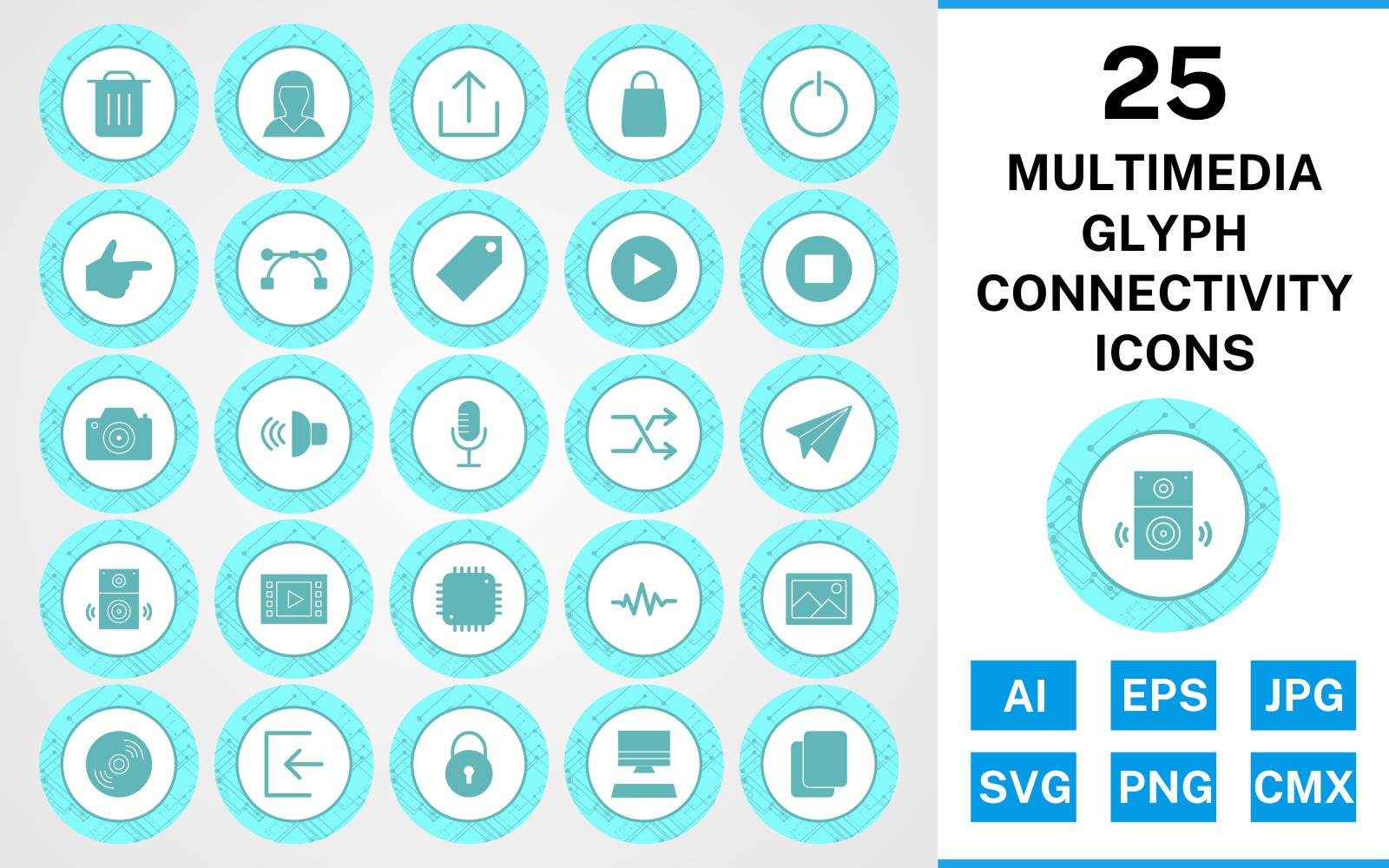 Download Набор иконок "25 Multimedia Glyph Connectivity Icon Set" / 25 Multimedia Glyph Connectivity Icon Set - Набор иконок на тему data set,file,icon,icons,glyph,vector,sign,symbol,connectivity,multimedia,logout,copy,shuffle,play,stop,upload,speaker,sign in,pictogram