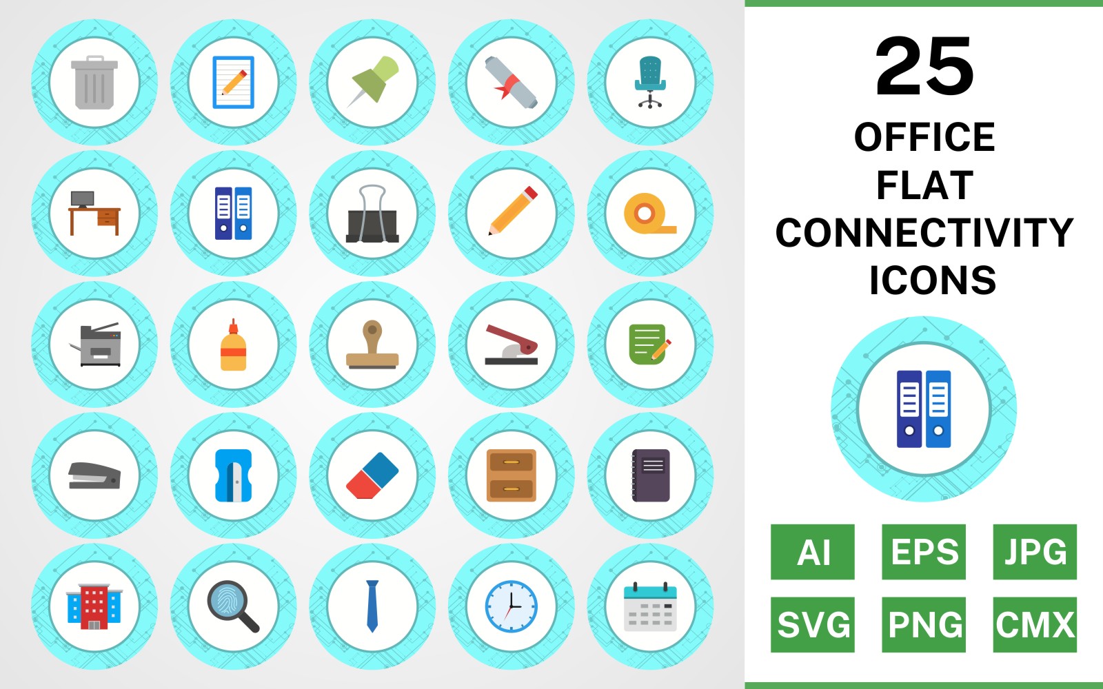 Download Набор иконок "25 Office Flat Connectivity Icon Set" / 25 Office Flat Connectivity Icon Set - Набор иконок на тему business set,file,icon,icons,flat,vector,sign,symbol,pictogram,connectivity,office,notepad,clock,tie,stamp,office chair,office table,post it,trash