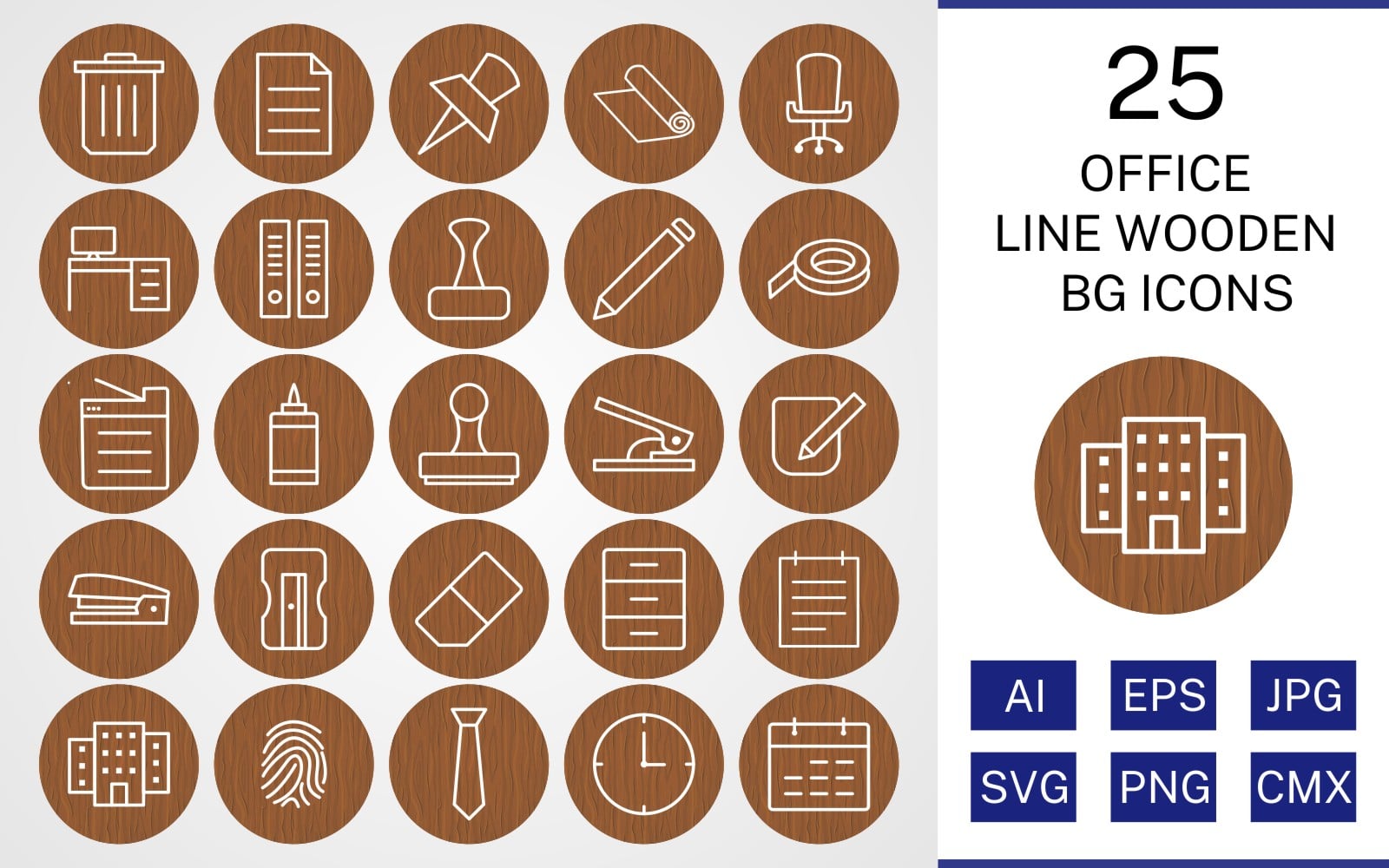 Download Набор иконок "25 Office Line Wooden BG Icon Set" / 25 Office Line Wooden BG Icon Set - Набор иконок на тему business set,file,icon,icons,background,vector,sign,symbol,pictogram,wooden,line,office,notepad,clock,tie,stamp,office chair,office table,post it,trash