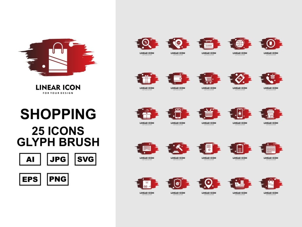 Download Набор иконок "25 Premium Business Glyph Brush Icon Set" / 25 Premium Business Glyph Brush Icon Set - Набор иконок на тему business label,ship,bag,box,document,best offer,trolley,shop,gift,credit card,percentage,wallet,cart,basketicon,icons