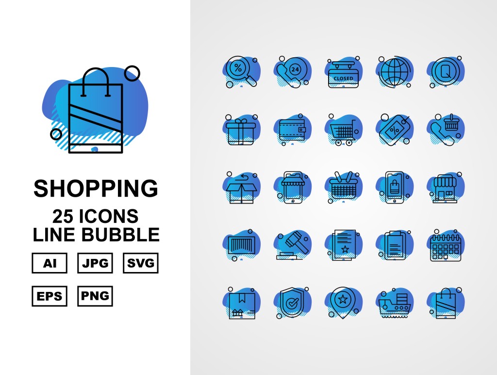 Download Набор иконок "25 Premium Business Line Bubble Icon Set" / 25 Premium Business Line Bubble Icon Set - Набор иконок на тему business label,ship,bag,box,document,best offer,trolley,shop,gift,credit card,percentage,wallet,cart,basketicon,icons