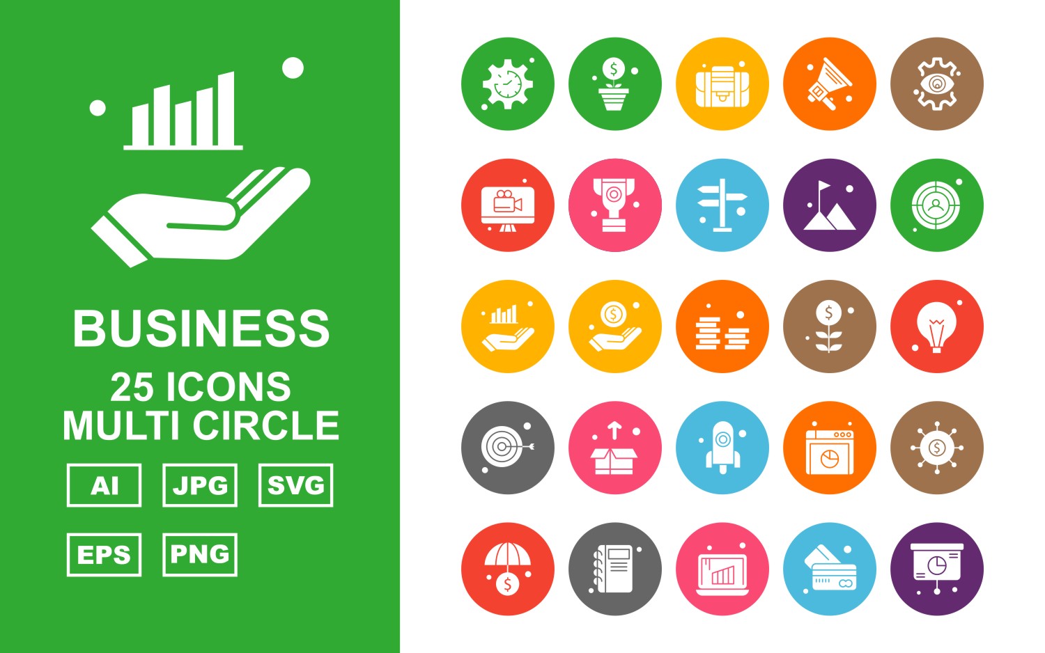 Download Набор иконок "25 Premium Business Multi Circle Icon Set" / 25 Premium Business Multi Circle Icon Set - Набор иконок на тему business label,ship,bag,box,document,best offer,trolley,shop,gift,credit card,percentage,wallet,cart,basketicon,icons