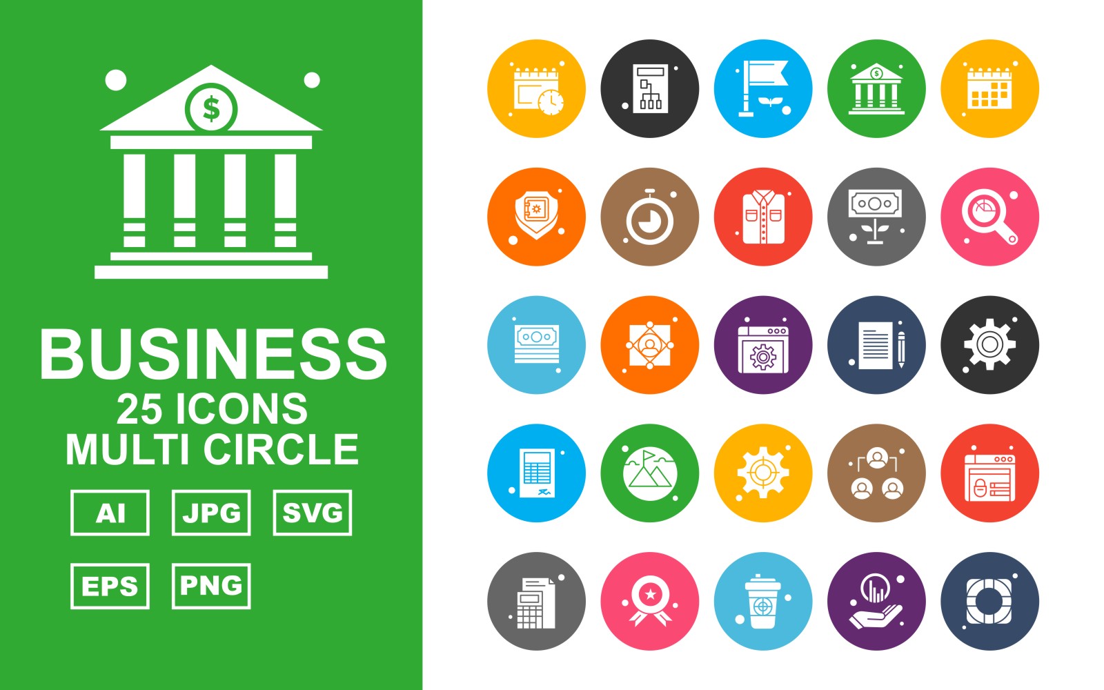 Download Набор иконок "25 Premium Business Multi Circle Iconset" / 25 Premium Business Multi Circle Iconset - Набор иконок на тему business calendar,user,leader,website,award,coffee,graph,target,server,flag,bank,shield,stopwatch,shirt,dollar,magnifying glass,document,setting,book,mountain
