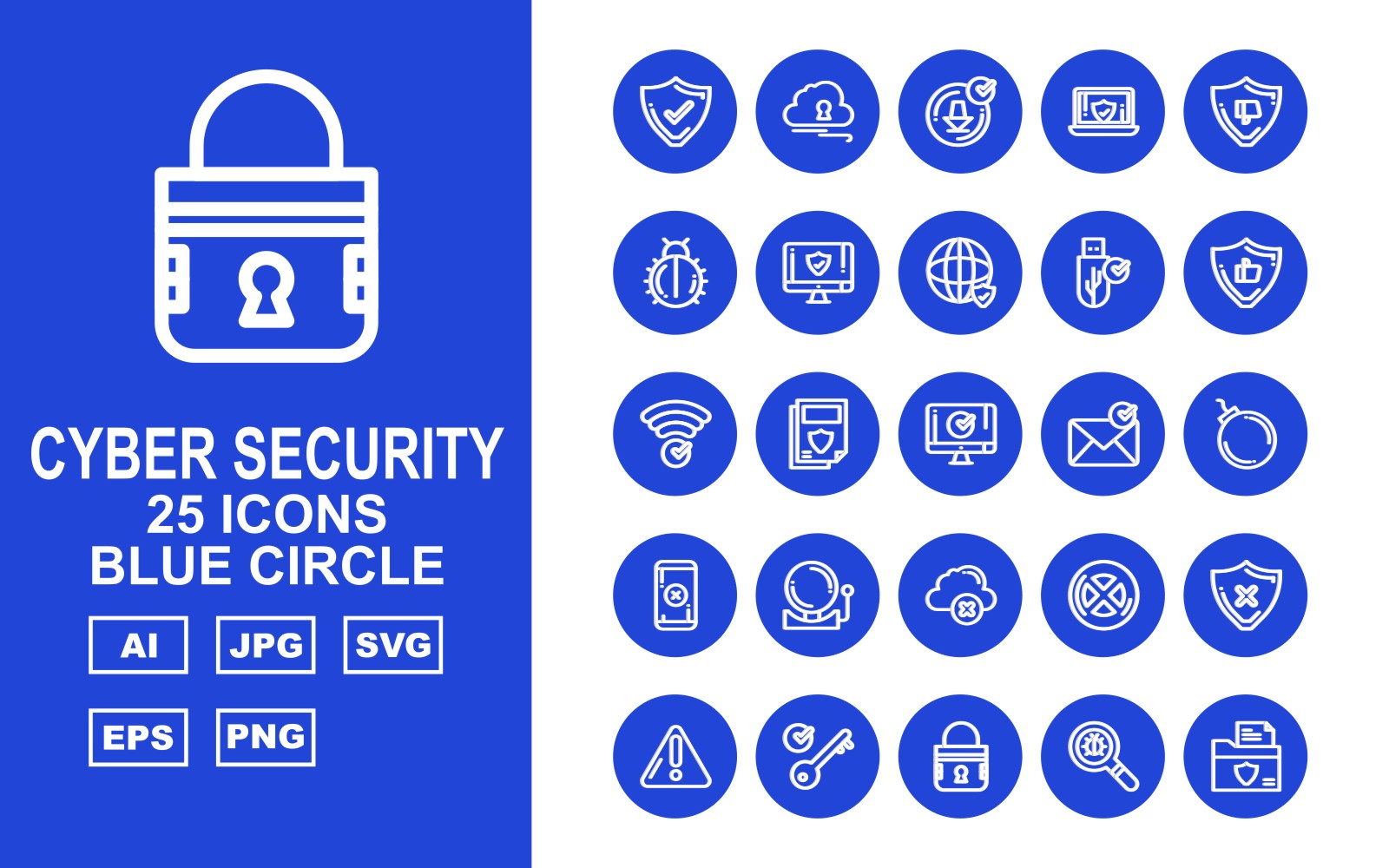 Download 25 Premium Cyber Security Blue Circle Icon Set - Набор иконок на тему security