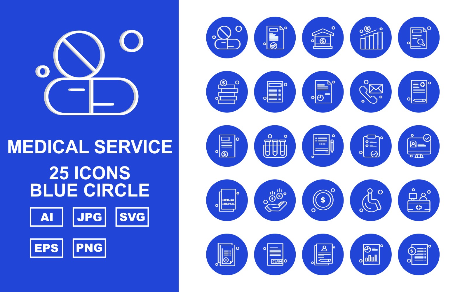Download Набор иконок "25 Premium Medical Service Blue Circle Icon Pack Set" / 25 Premium Medical Service Blue Circle Icon Pack Set - Набор иконок на тему medical medical capsule,test tube,patient,reception,report,document,bar graph,home,chart,coin,telephone,notepad,lcd,donuts,icon,icons