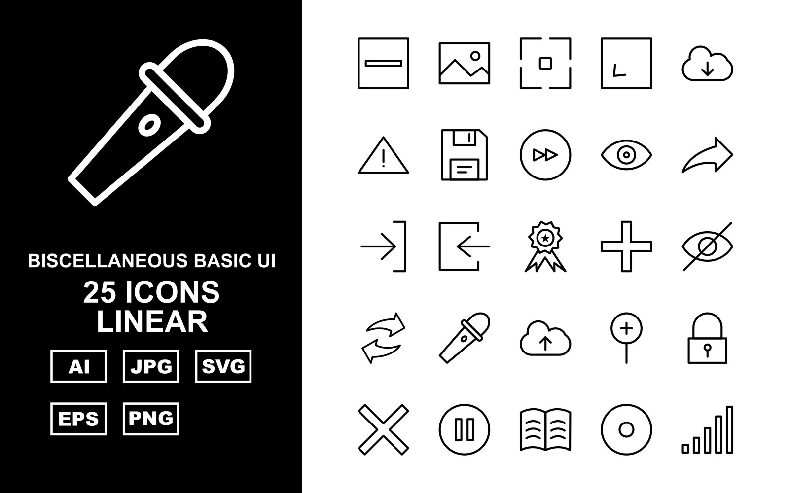 Download Набор иконок "25 Premium Miscellaneous Linear Icon Set" / 25 Premium Miscellaneous Linear Icon Set - Набор иконок на тему data design,arrow left,book,hosting web,setting,clock,upload,exclamation,pen,image,focus,enlarge,download,danger,floppy,next,eye,share,right,award